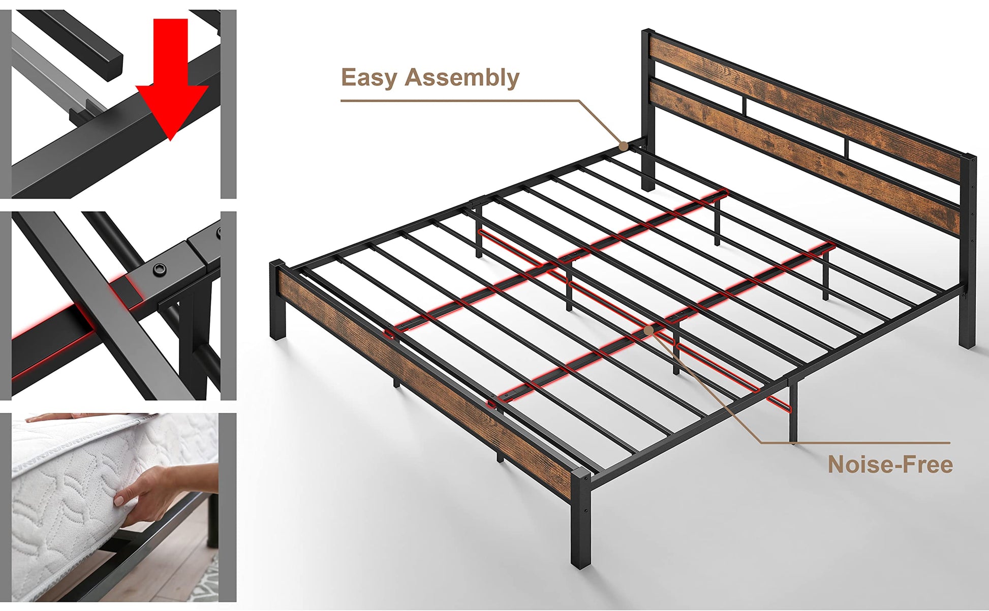 King Bed Frame and Headboard, Easy Assembly, Noise-Free, No Box Spring Needed