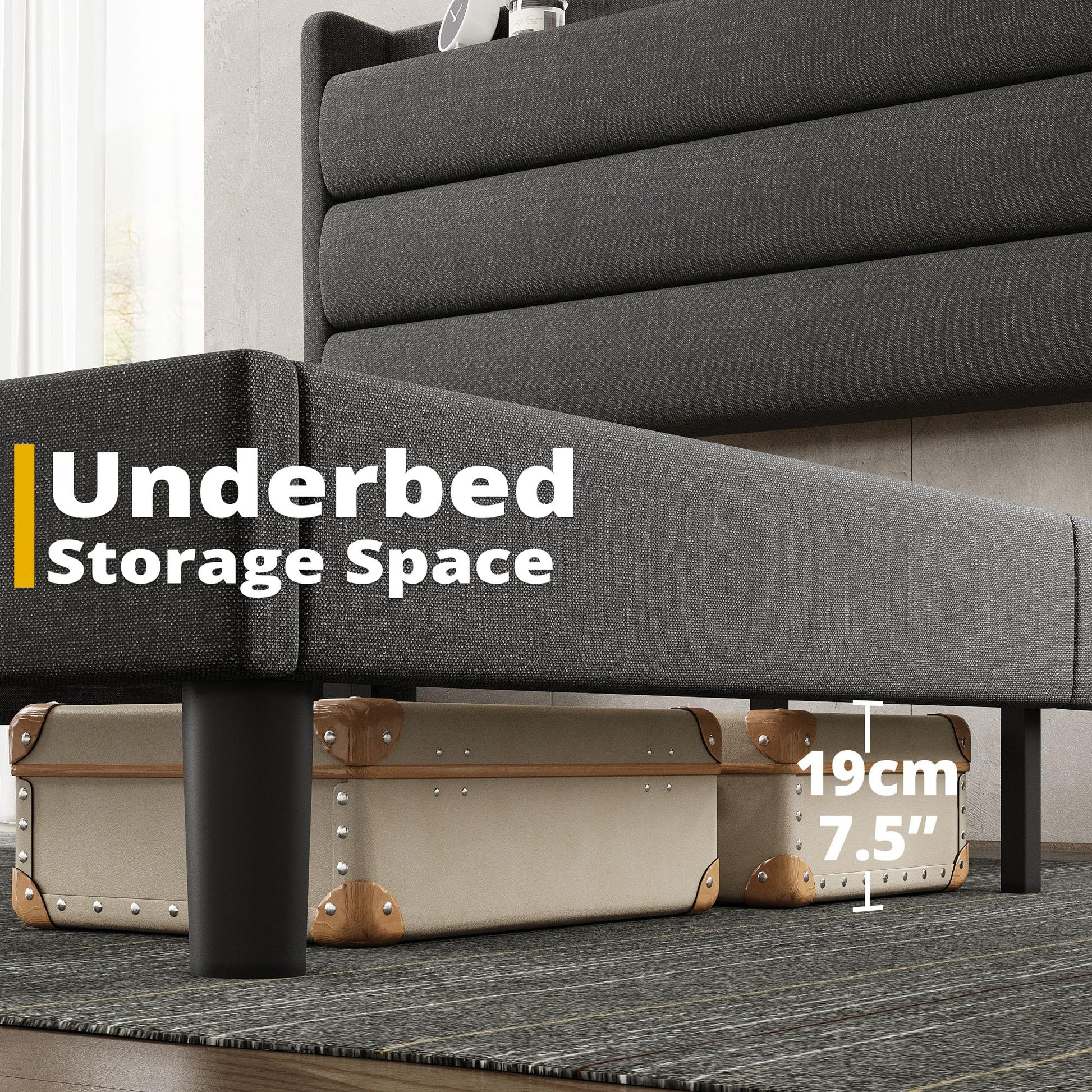 King Bed Frame, Storage Headboard with Outlets, Sturdy and Stable, No Noise
