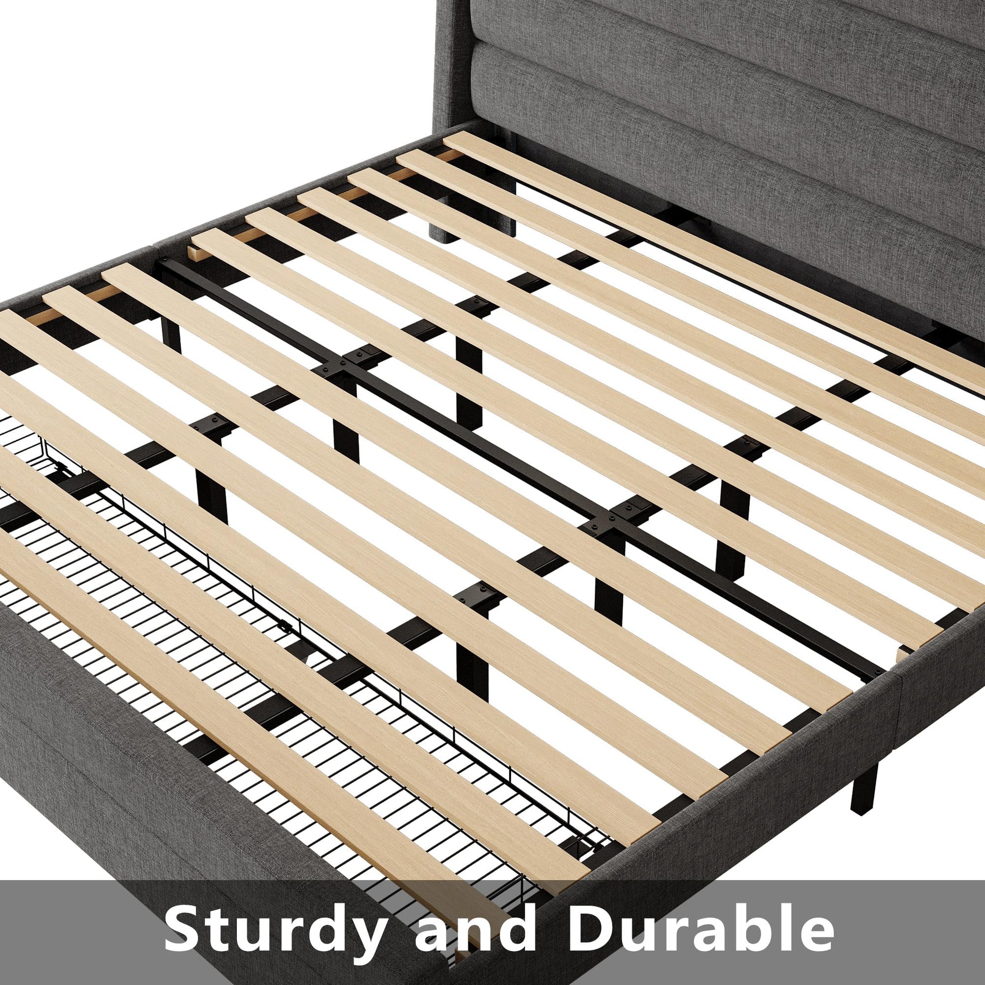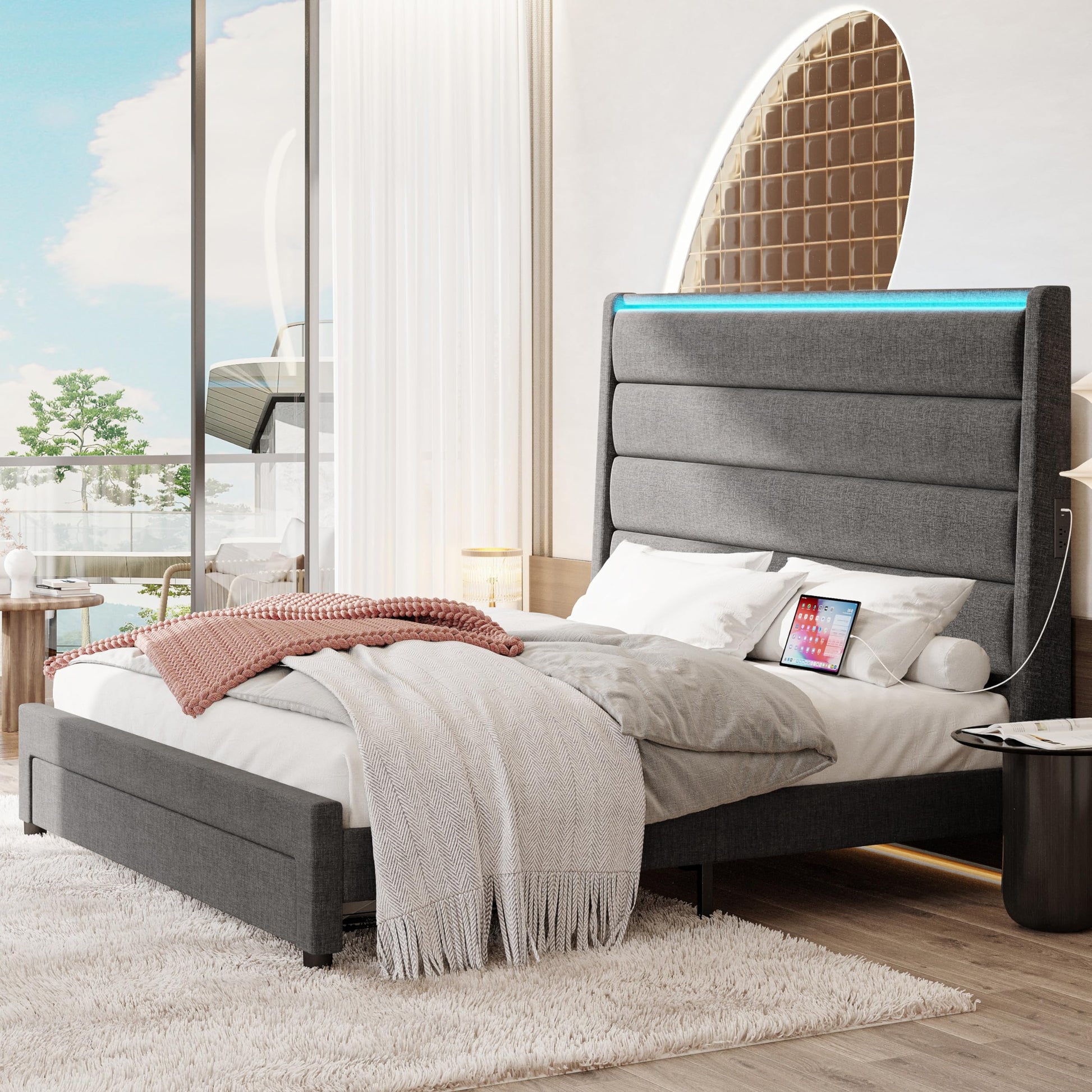 King Size Bed Frame with 55 Inches All Wingback Headboard & Drawer & 2 Charging Station,