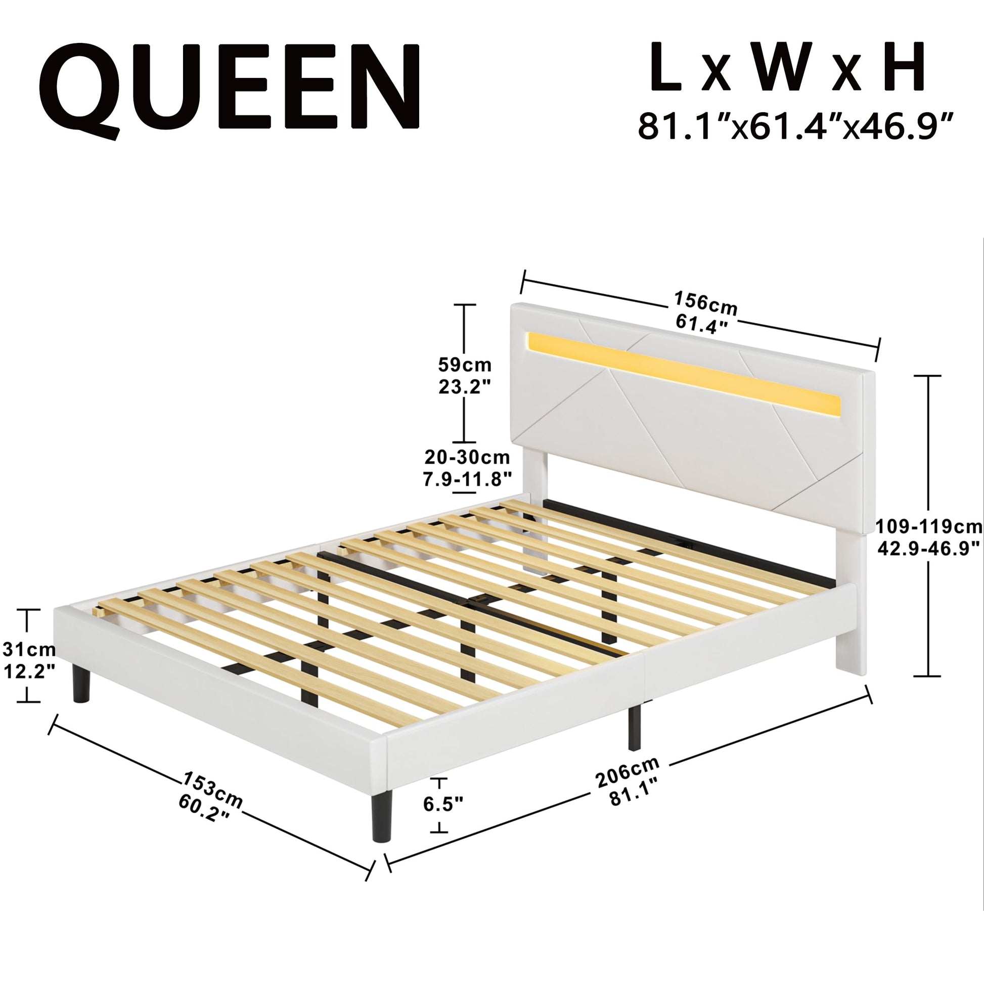 Queen Bed Frame with LED Lights(Smart APP Control), Upholstered Modern Platform Bed