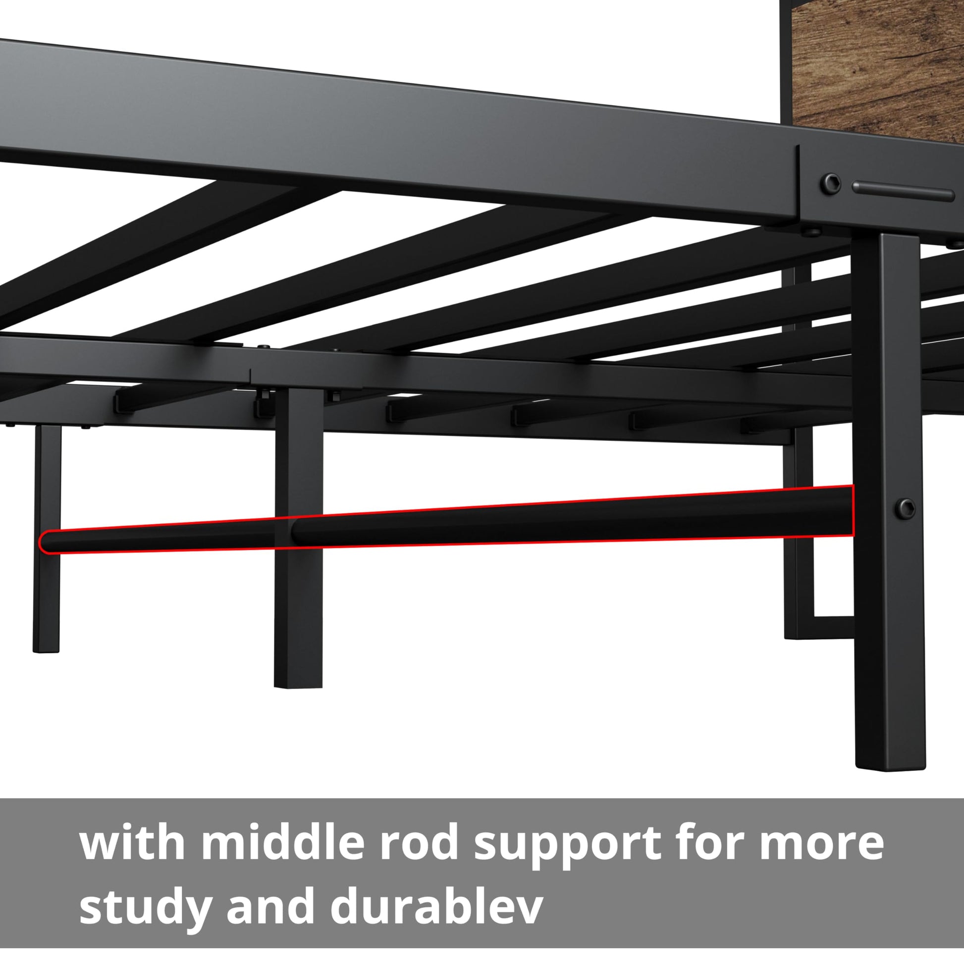 - Durable and Sturdy: with central support bar, headboard double support leg, and 13 heavy-duty metal slats reinforce the sturdiness and durability of bed frame queen size. no shaking and offer strong support for a different mattress,