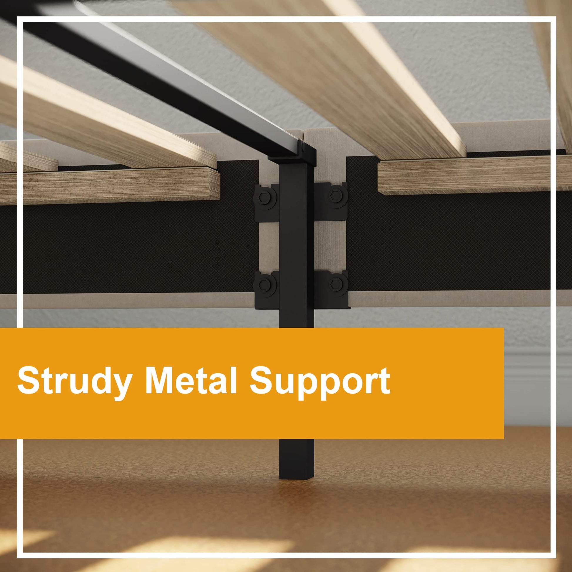 - Sturdy Metal construction: Load capacity up to 880lbs, this twin bed frame has 2 additional metal supporting legs. With a brace connecting the sides, this platform bed frame's top wooden slats are held in place with velcro, all to make for a solid mattress foundation to support any mattress.Frame made of FSC-Certified wood