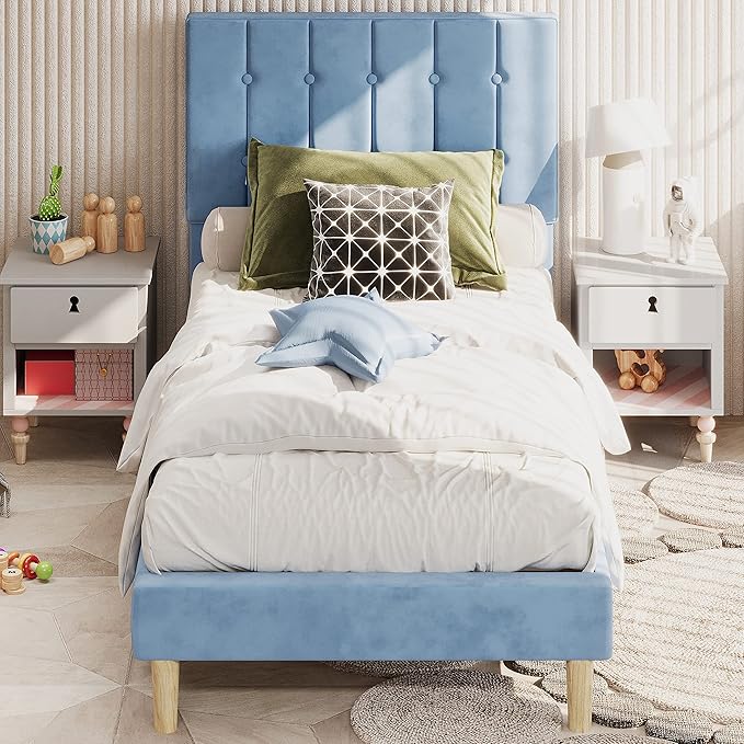 Twin Bed Frames, Velvet Upholstered Platform Bed Frame
