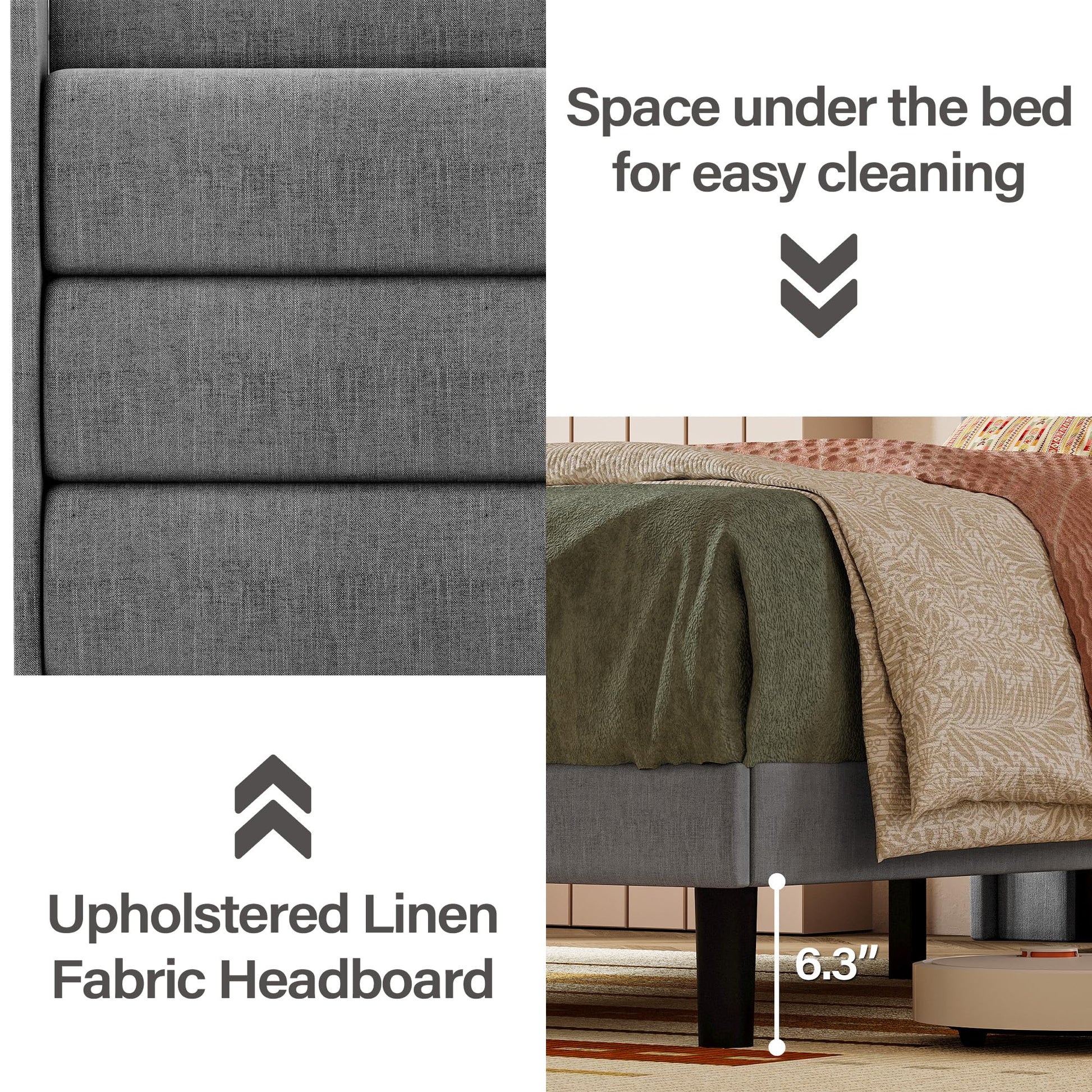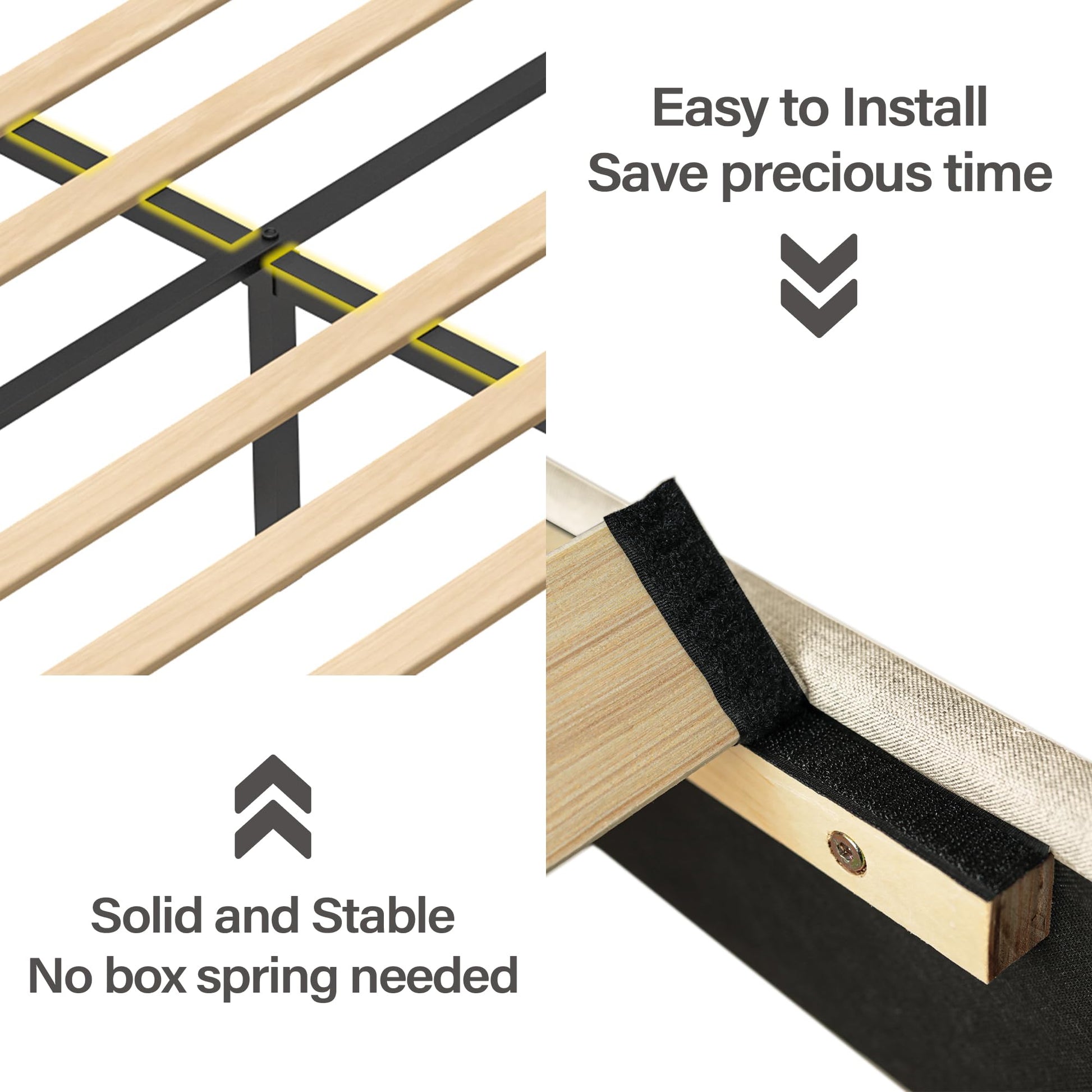 - STURDY: The twin XL platform bed frame with soft upholstered headboard provides a comfortable backrest, and the combined metal and wood slatted frame won't squeak, shift, or bend