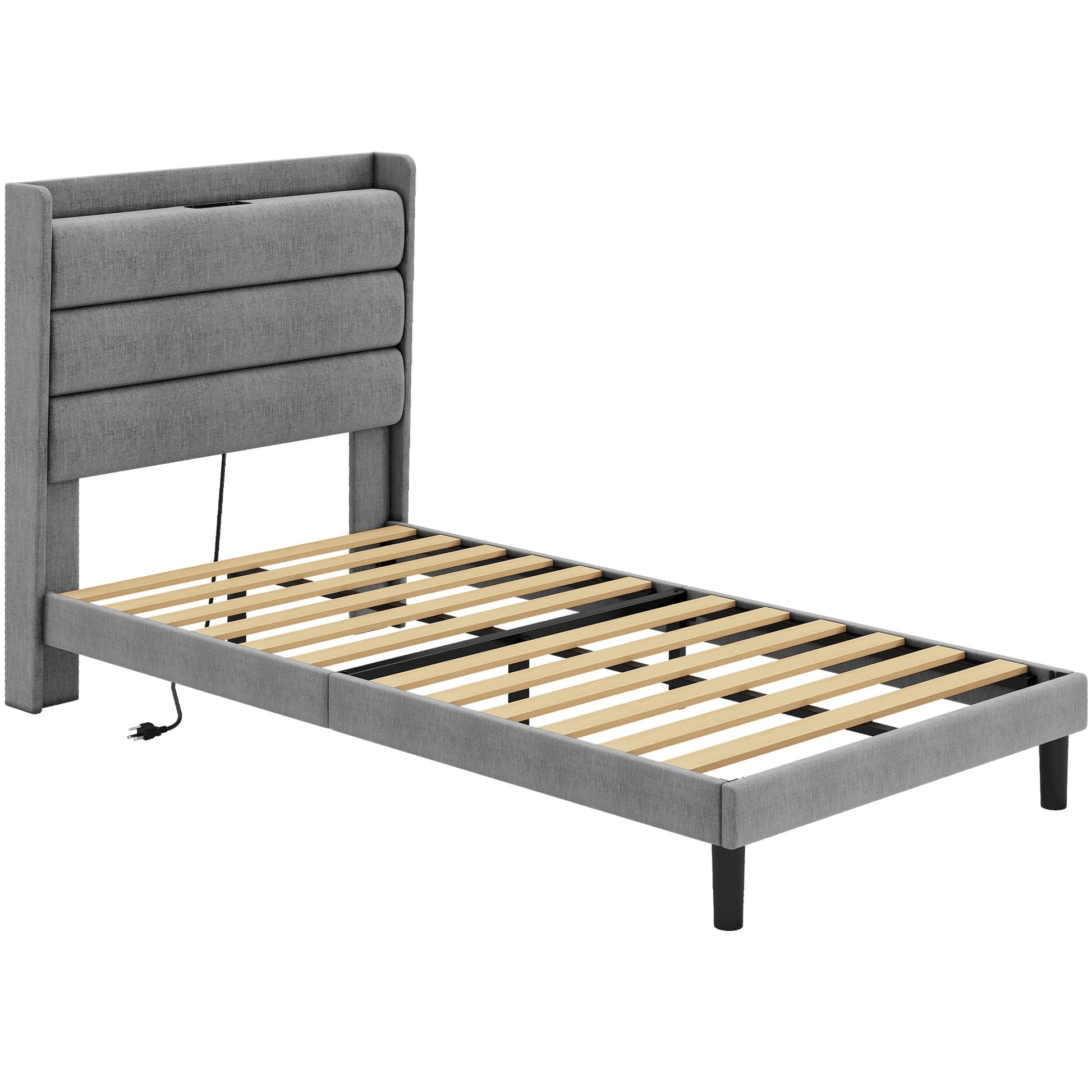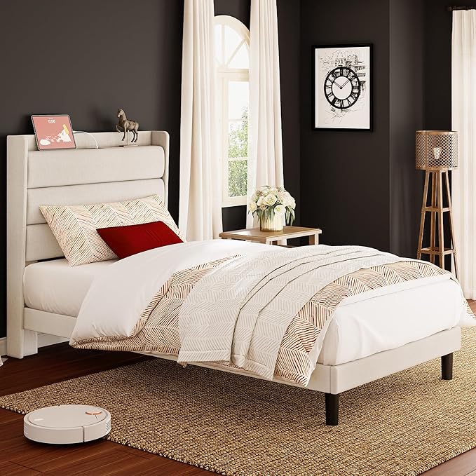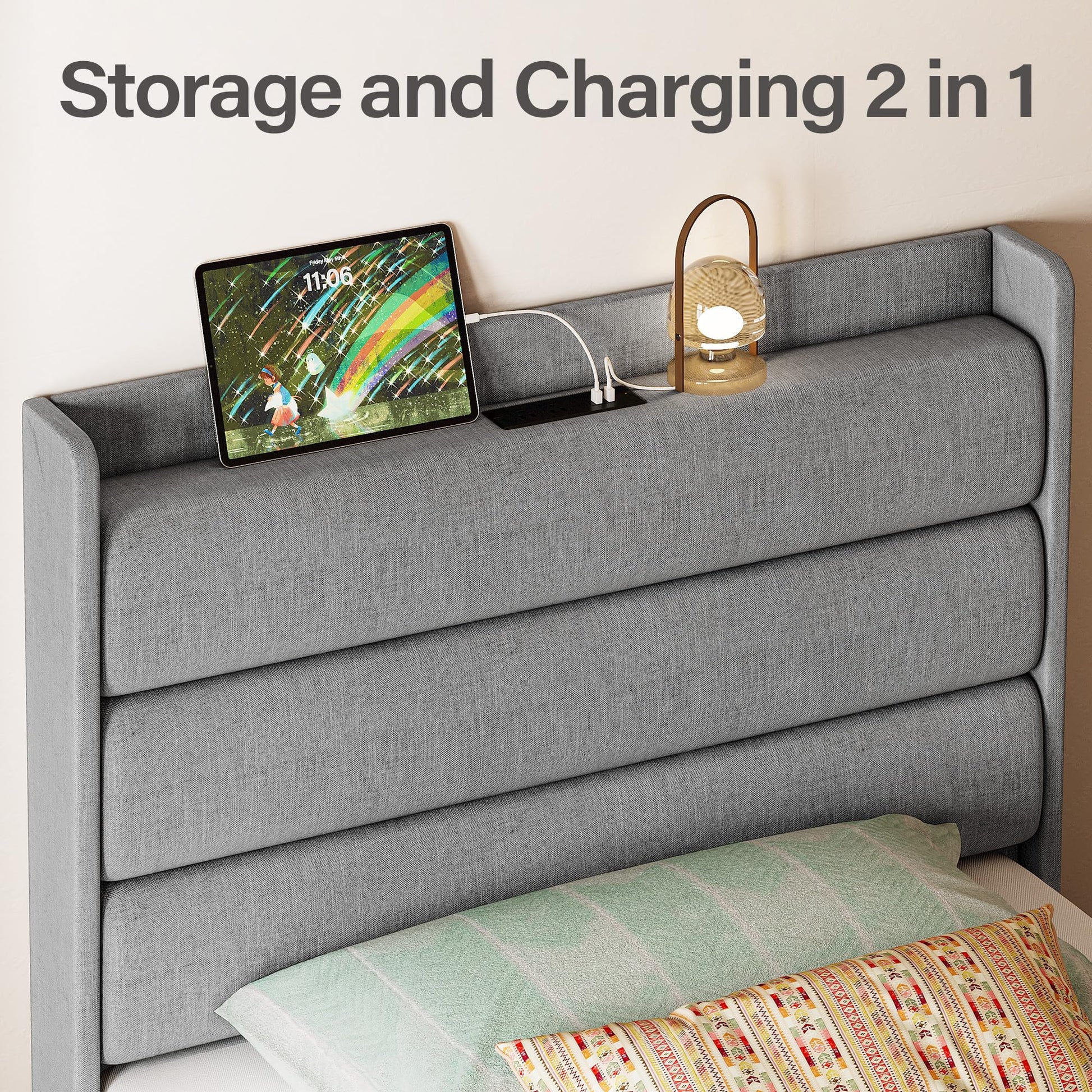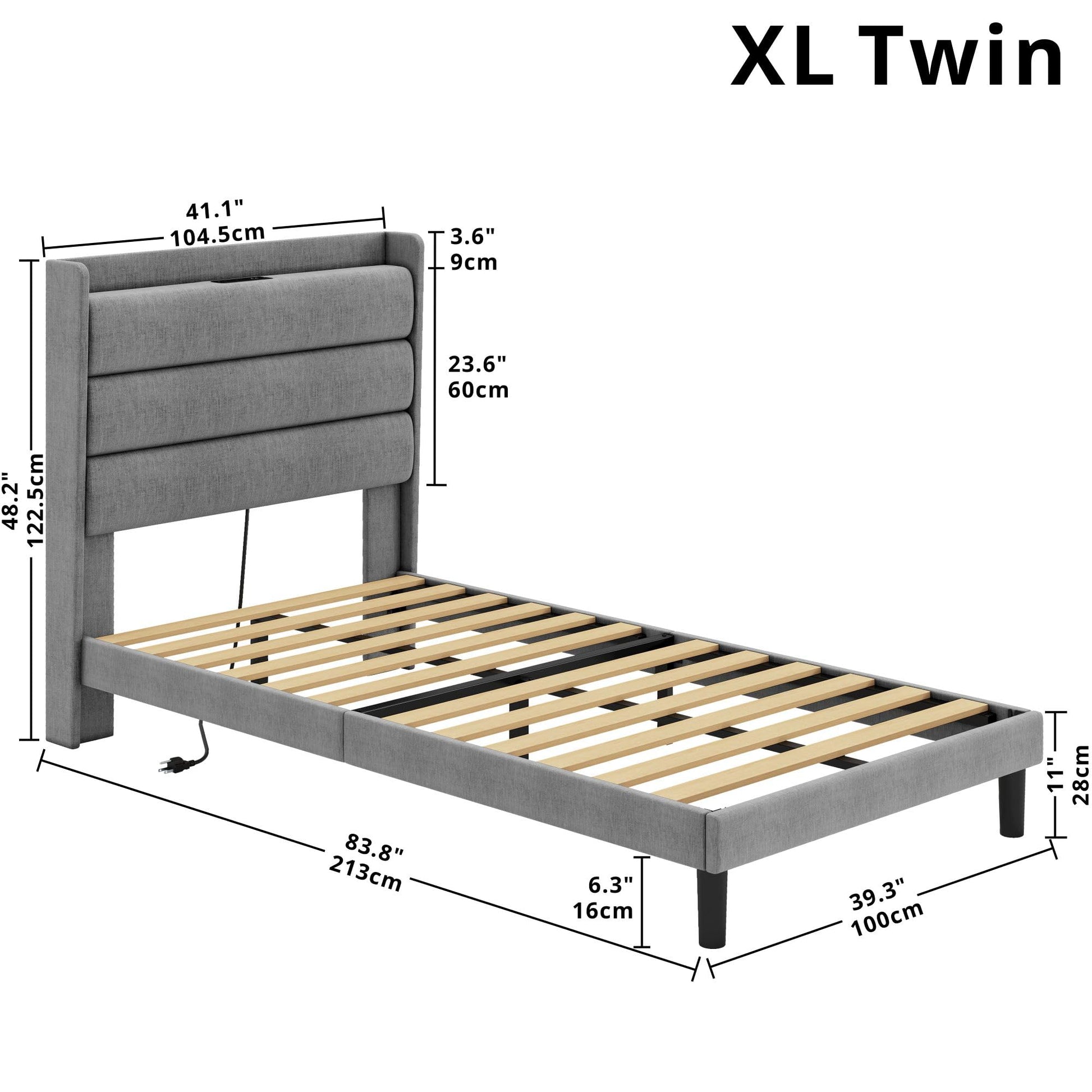 Twin XL Bed Frames, Storage Headboard with Outlets, Sturdy and Stable, No Noise, No