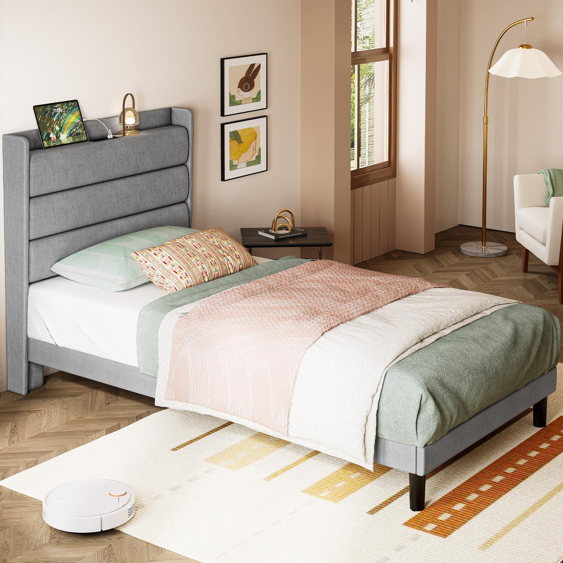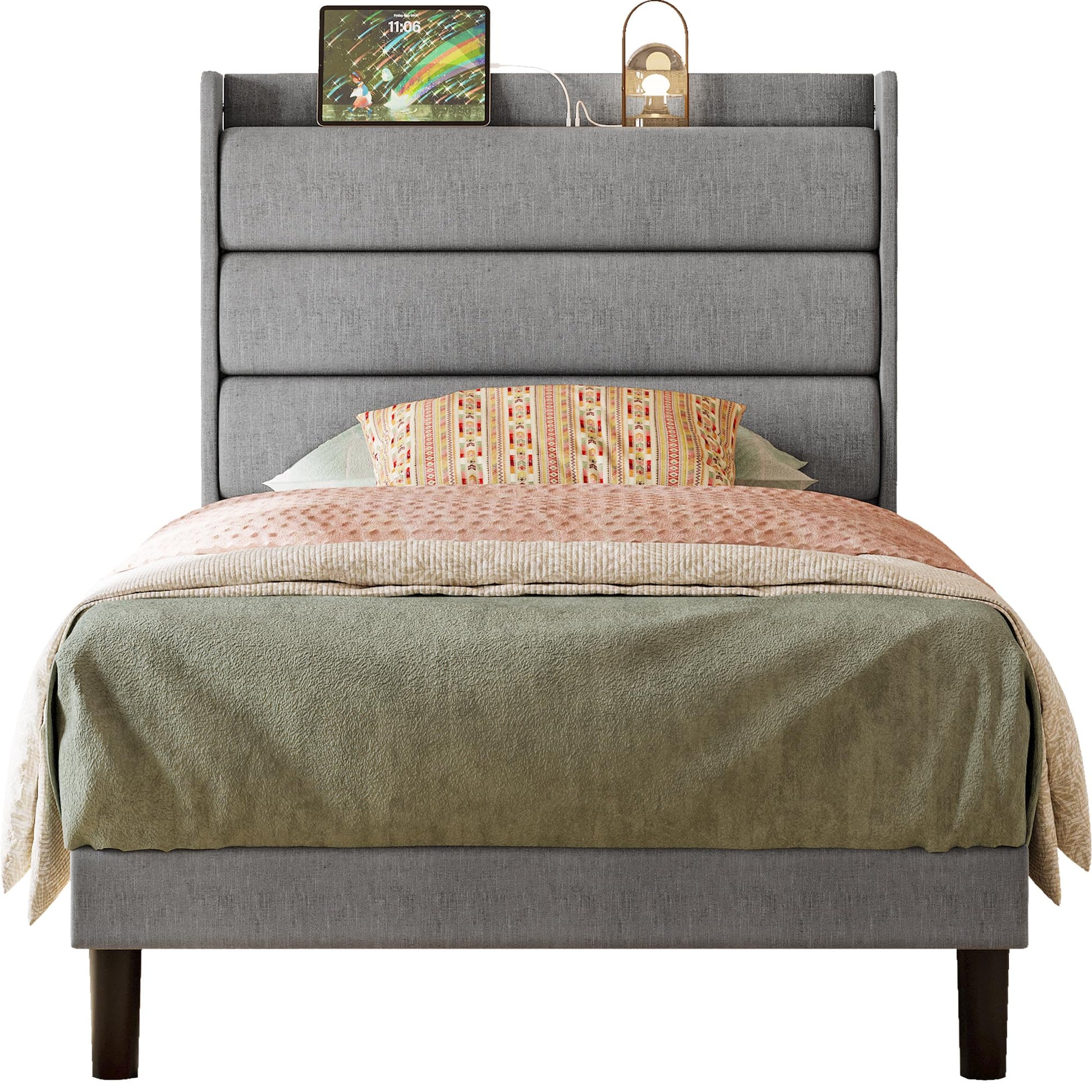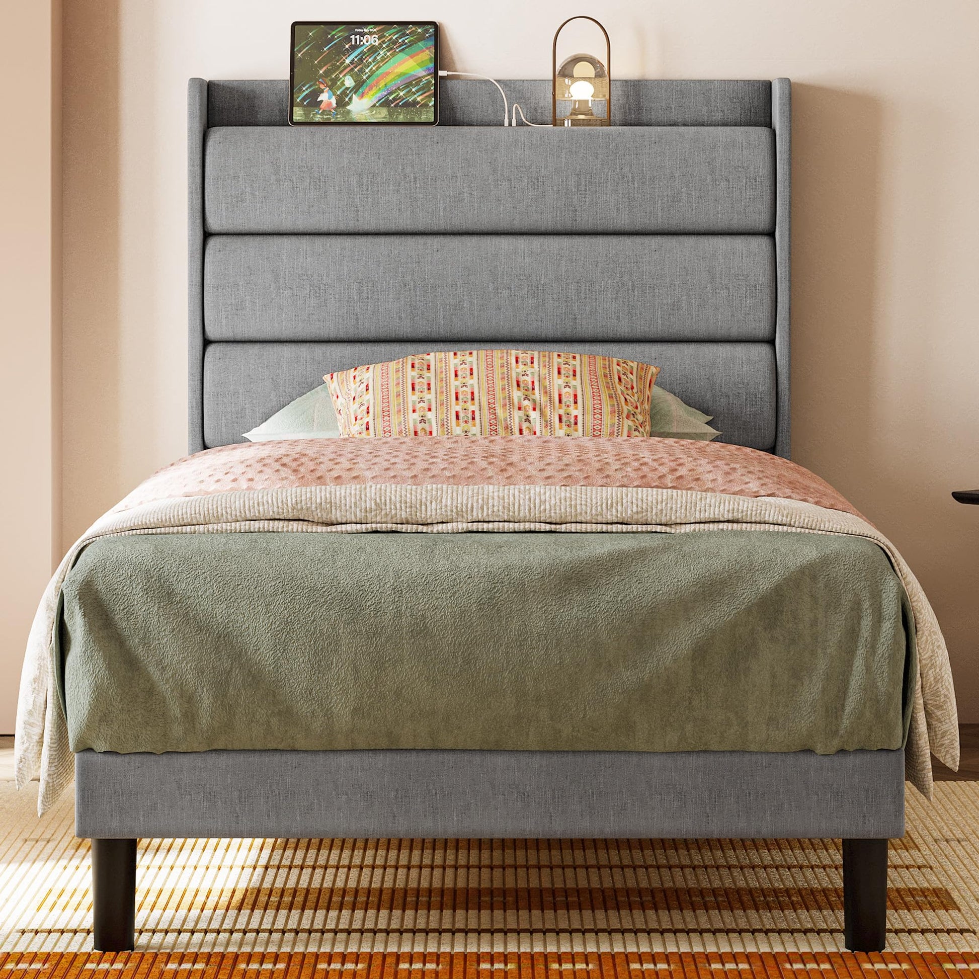 Twin XL Bed Frames, Storage Headboard with Outlets, Sturdy and Stable, No Noise, No