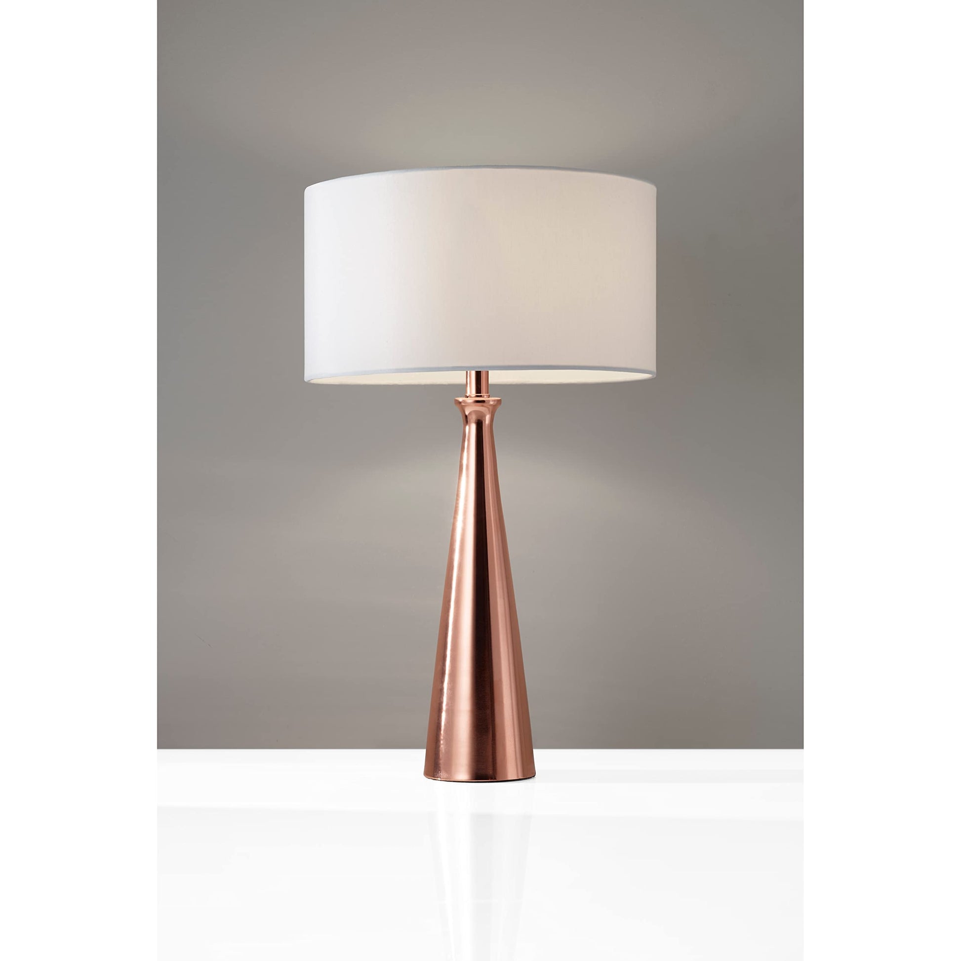 Elevate your space with this elegant table lamp featuring a smooth, tapered base in sophisticated black finish. The textured cream and brown fabric shade creates warm, ambient lighting perfect for desks, nightstands, or side tables.