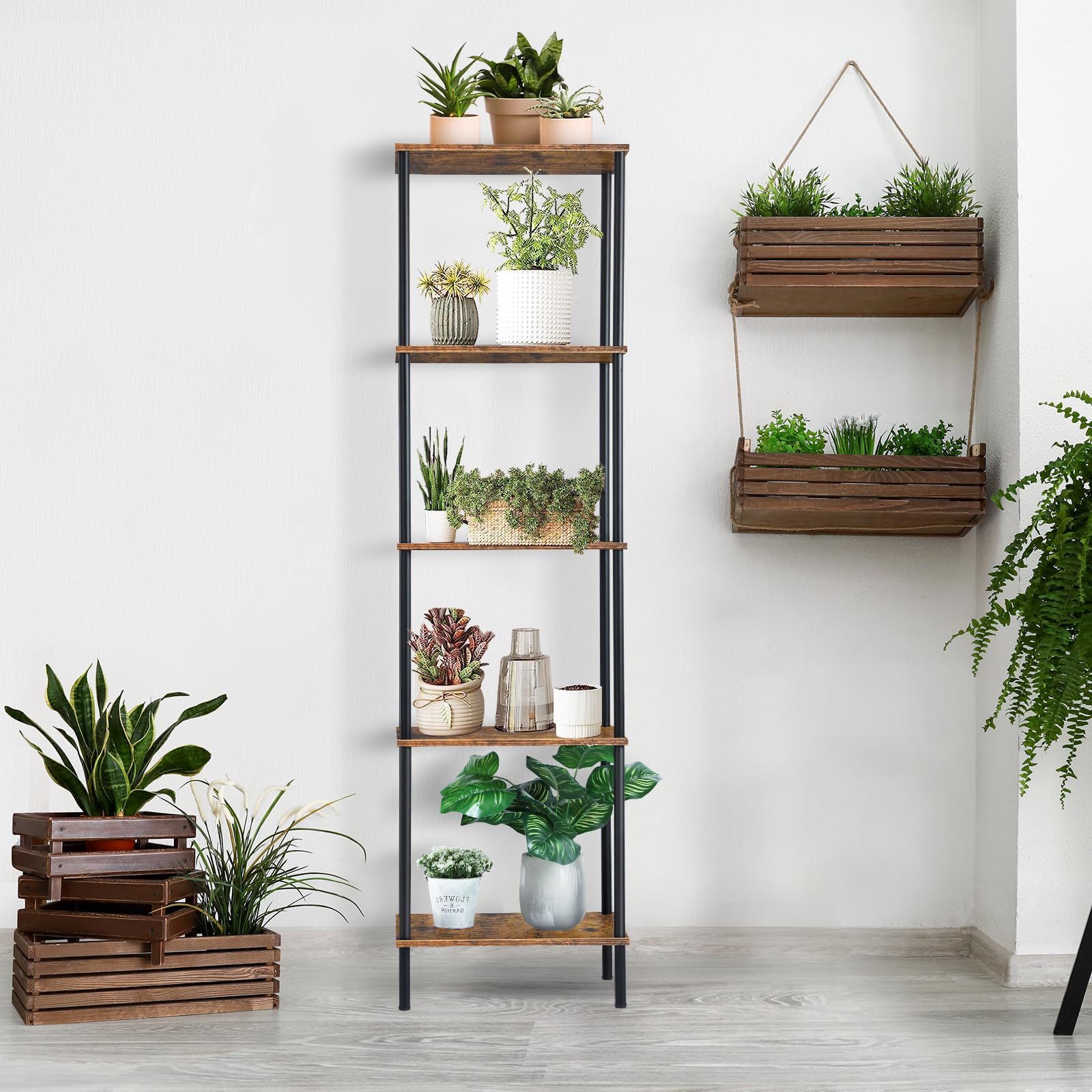 5 Tier Shelves Bookshelf,Tall Narrow Bookcase with Shelves,Wood and Metal Book Shelf Storage Organizer