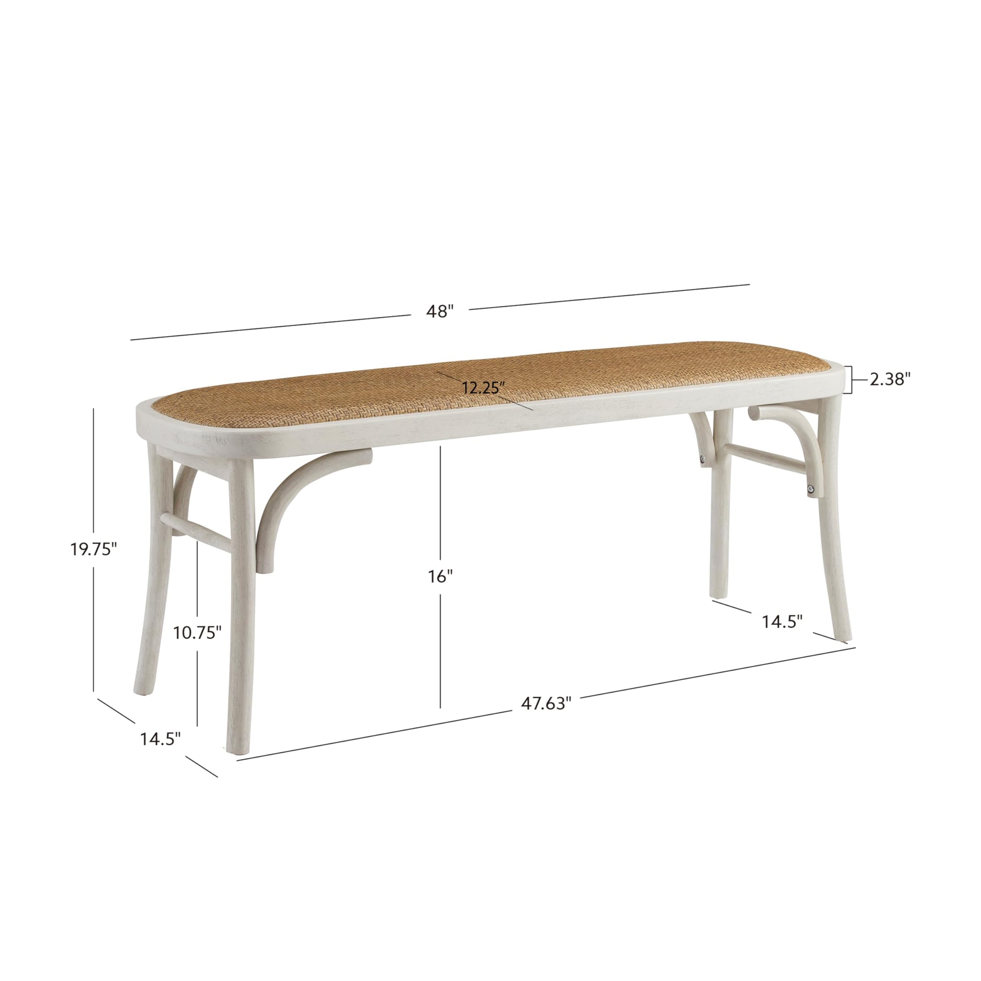 Bentwood Woven Rattan Seat Hank Bench