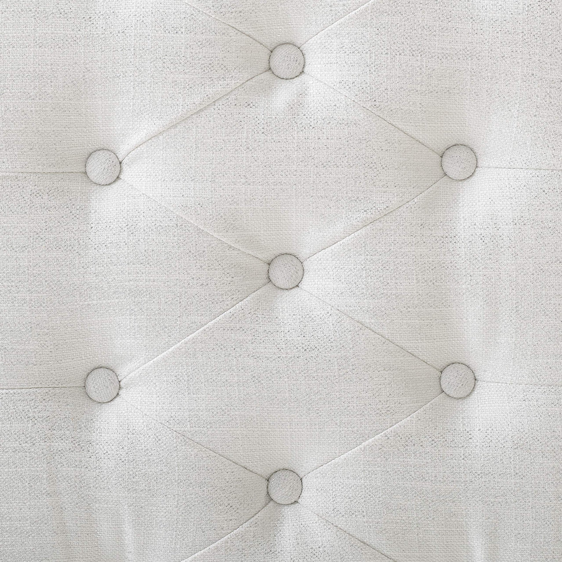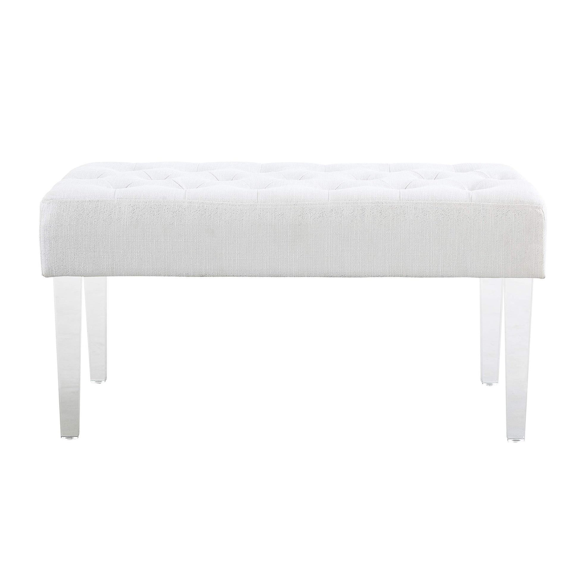 - Extra padded 6" tufted bench top is upholstered in a soothing white linen with silver lurex thread fabric that can seamlessly be matched in various home decors while providing immense comfort.