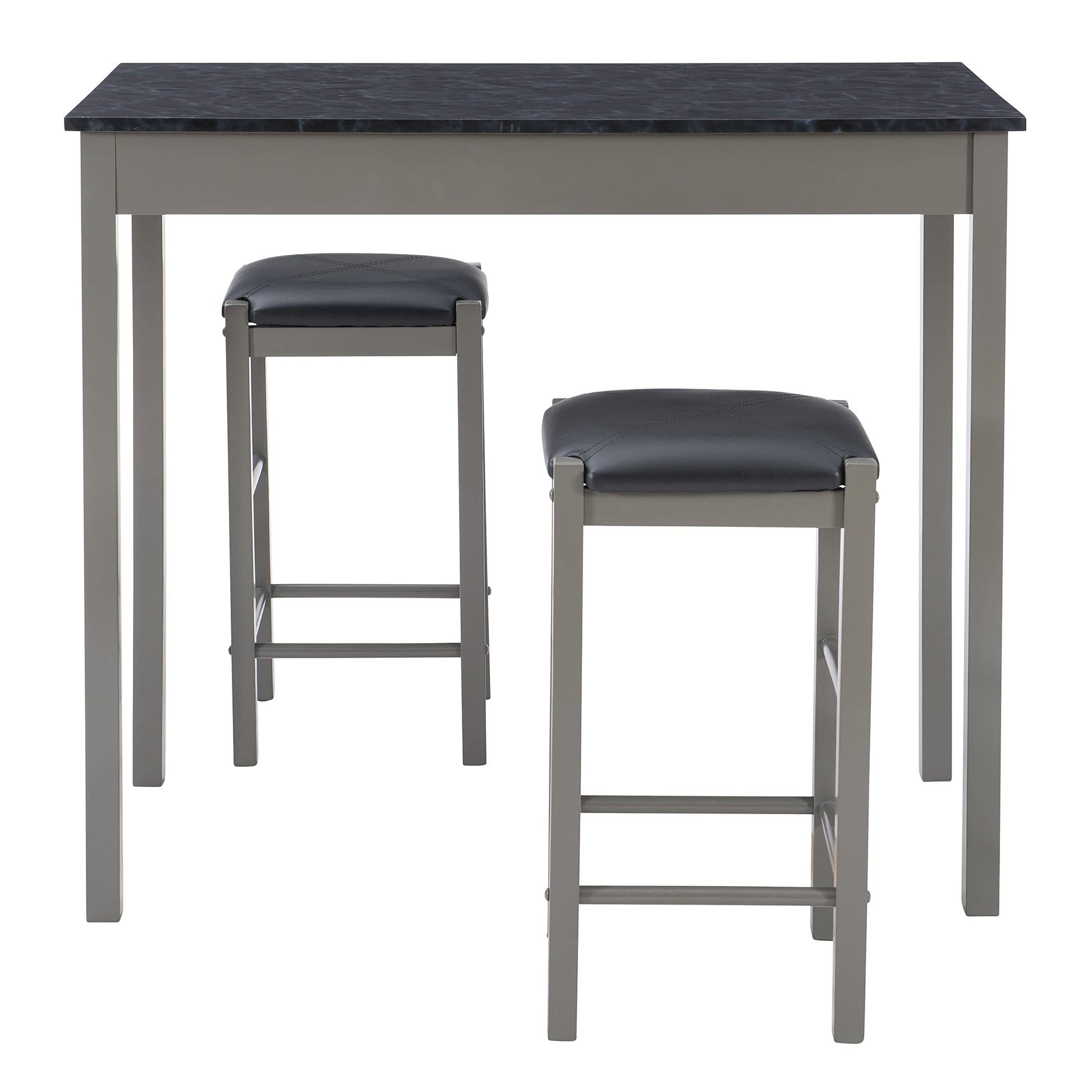 - Your purchase includes The Grey and Faux Marble 3 Piece Tavern Set |1 Counter height table, 2 padded counter stools & all tools required for assembly.