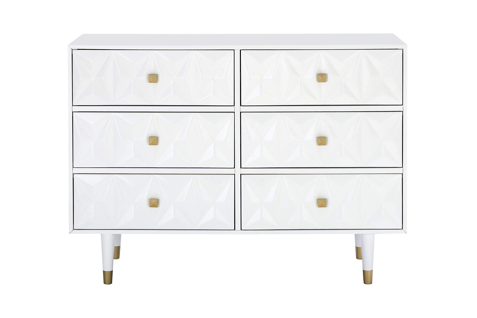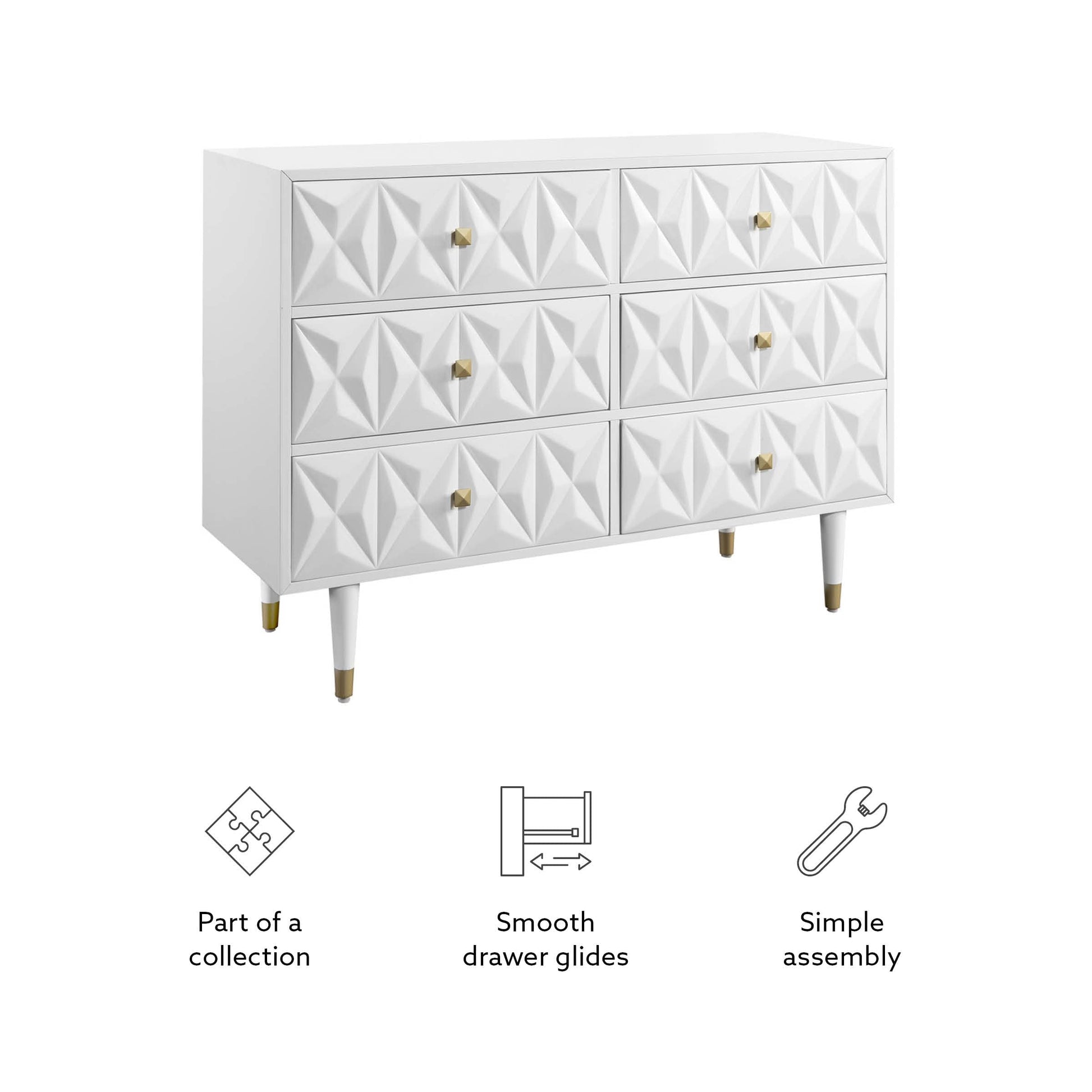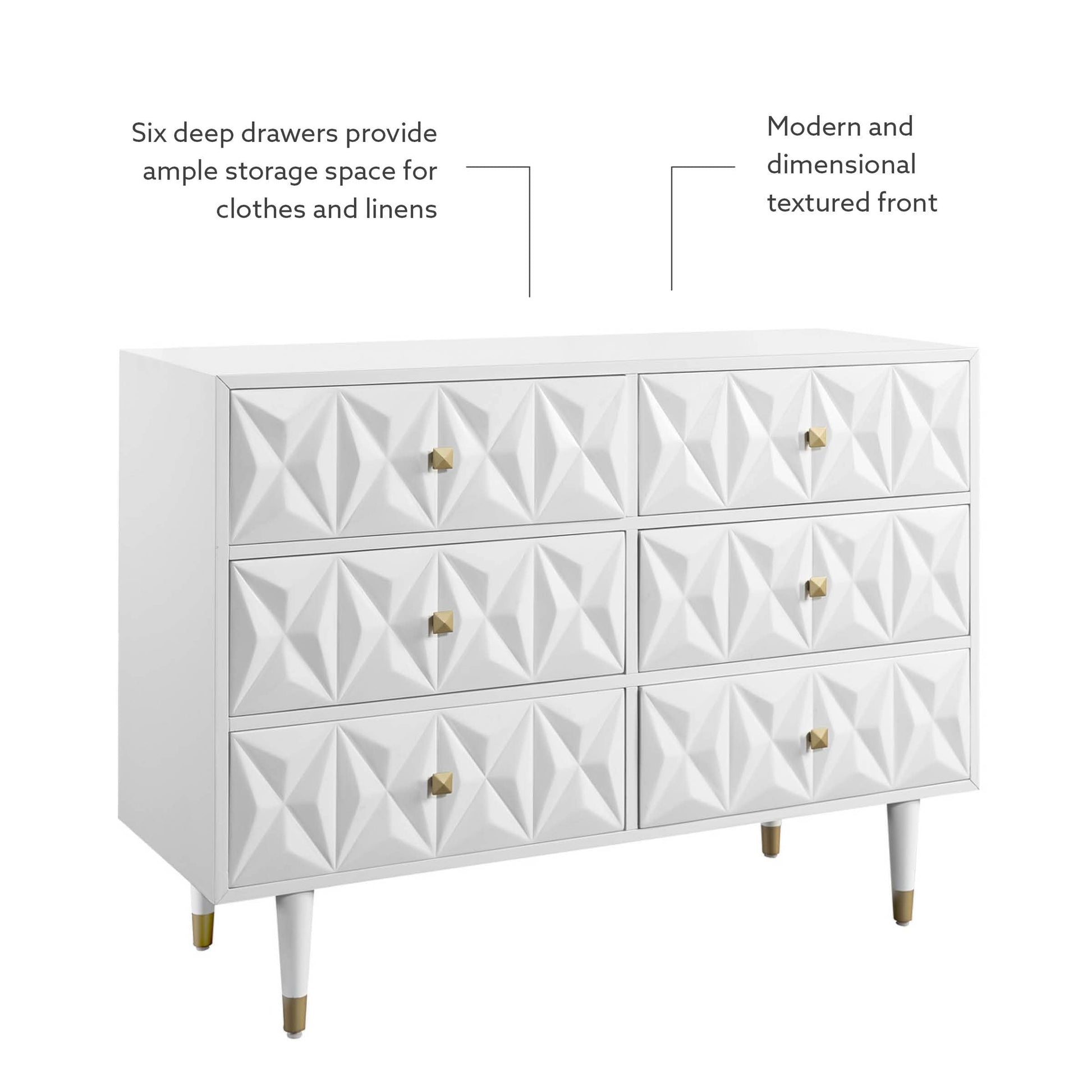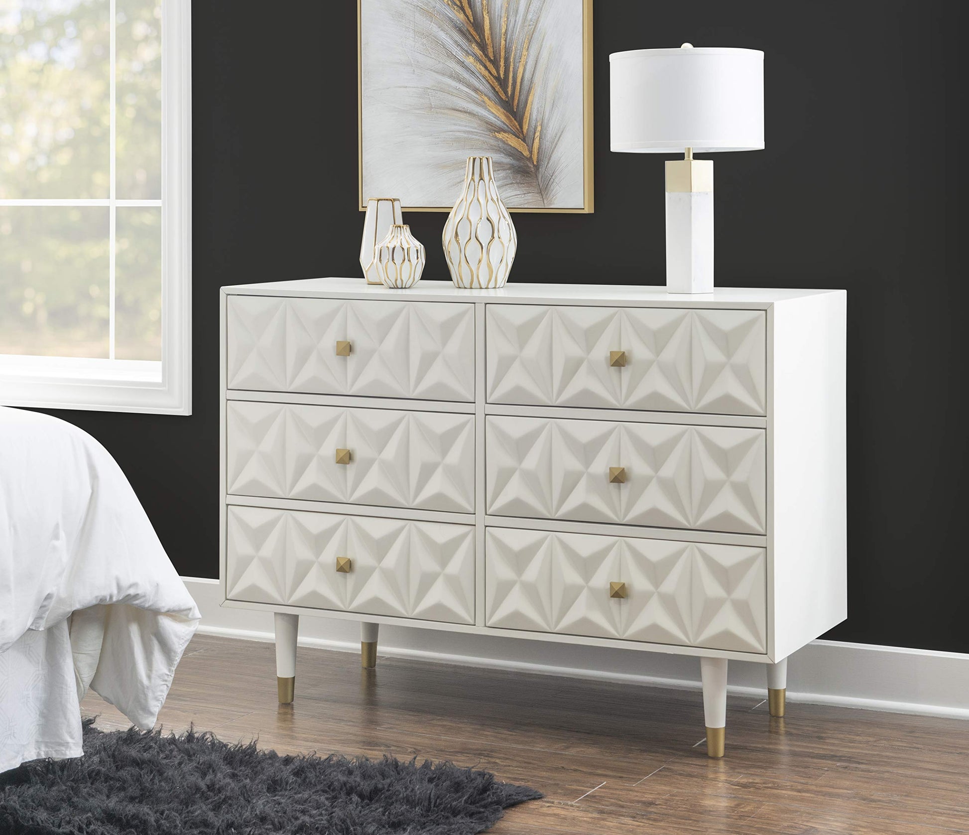 Home Décor Sheerah Six Drawer Geo Texture White Dresser, Gold