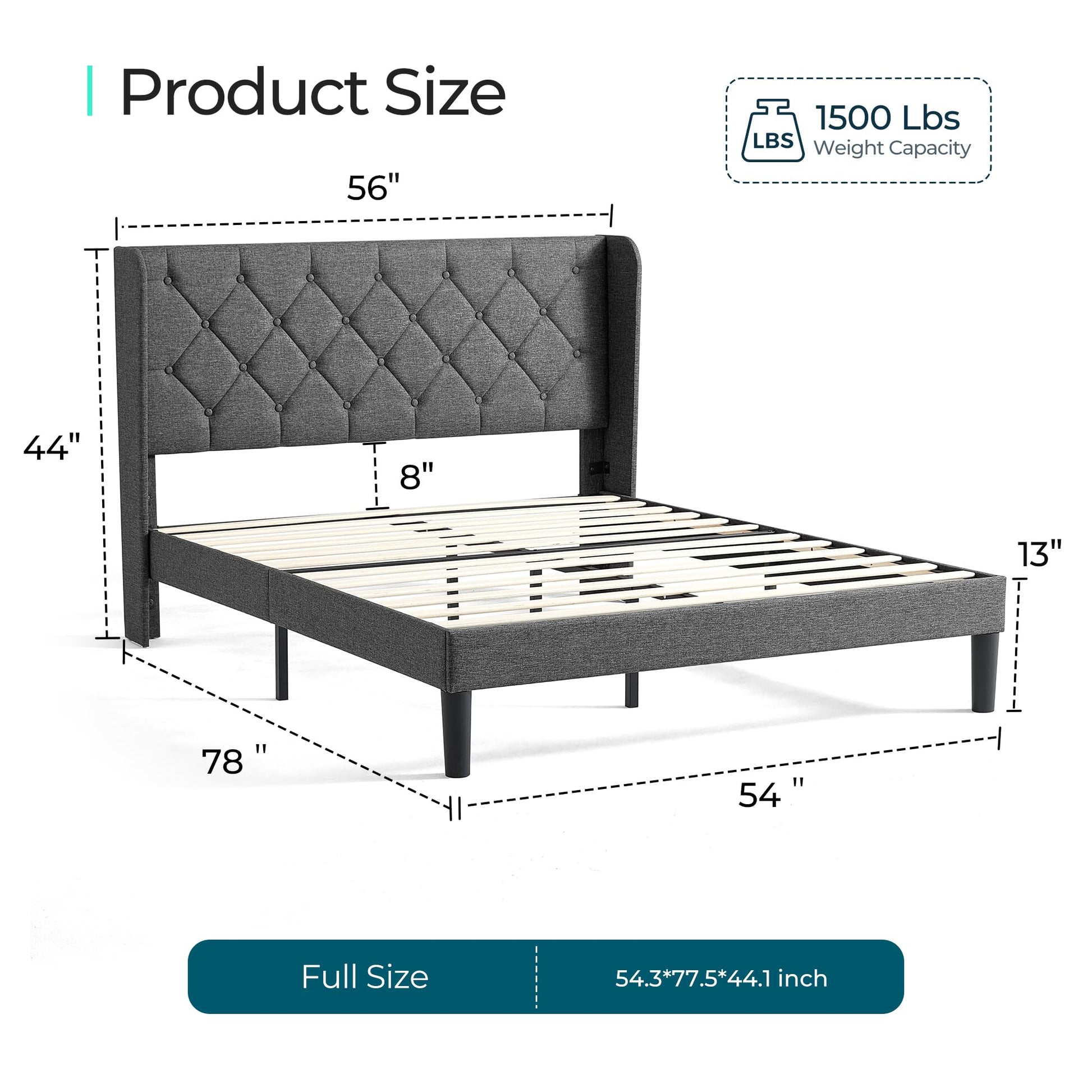 - Under Bed Storage for a Neat and Stylish Look -Maximize your room's organization potential with 8" of under-bed storage space, ideal for suitcases, shoes, toys, and more. Keep your space tidy and efficient, even in smaller rooms. Full Size Bed Frame Dimensions: *W*H 78" x 56" x 44" Suitable for 75" x 54" Mattress