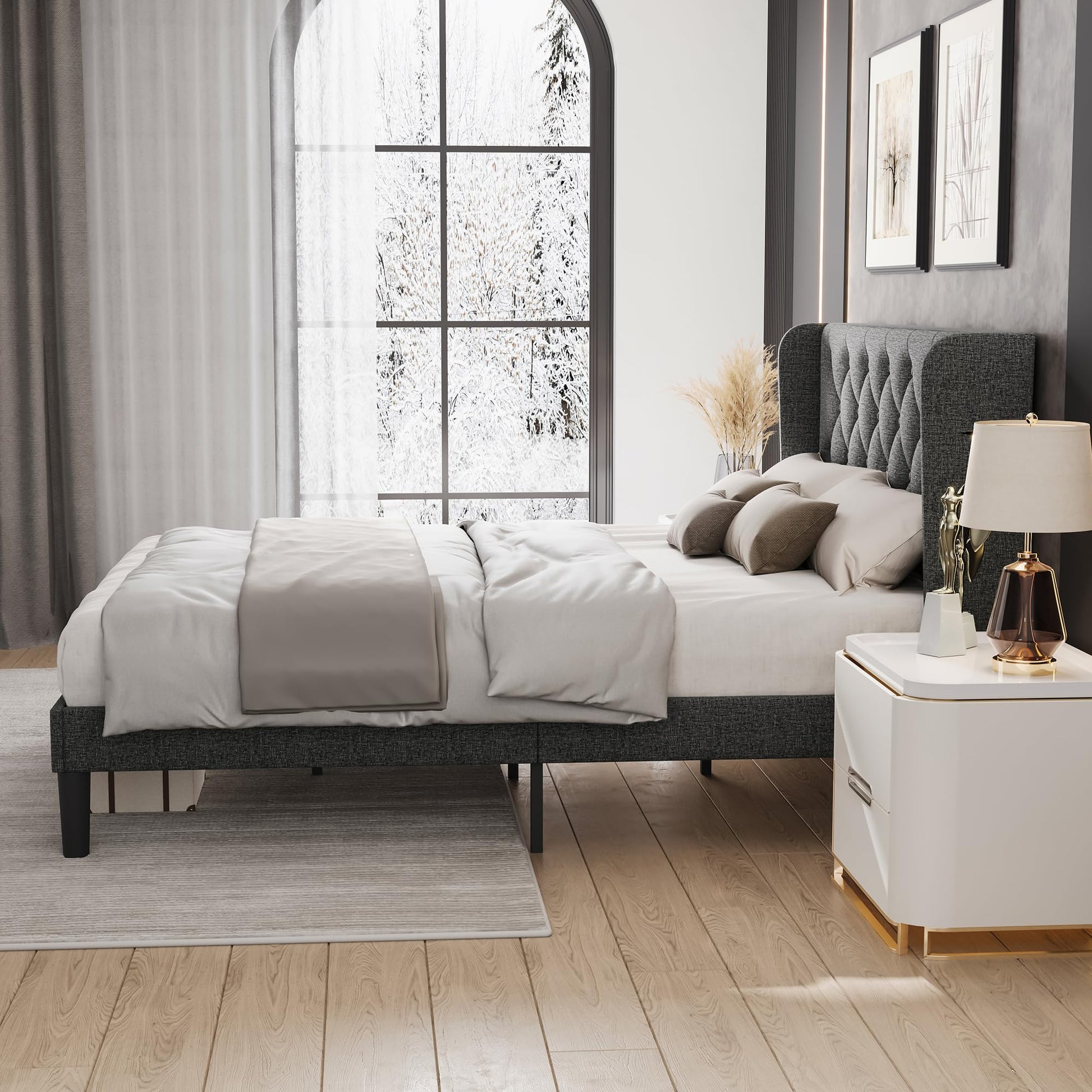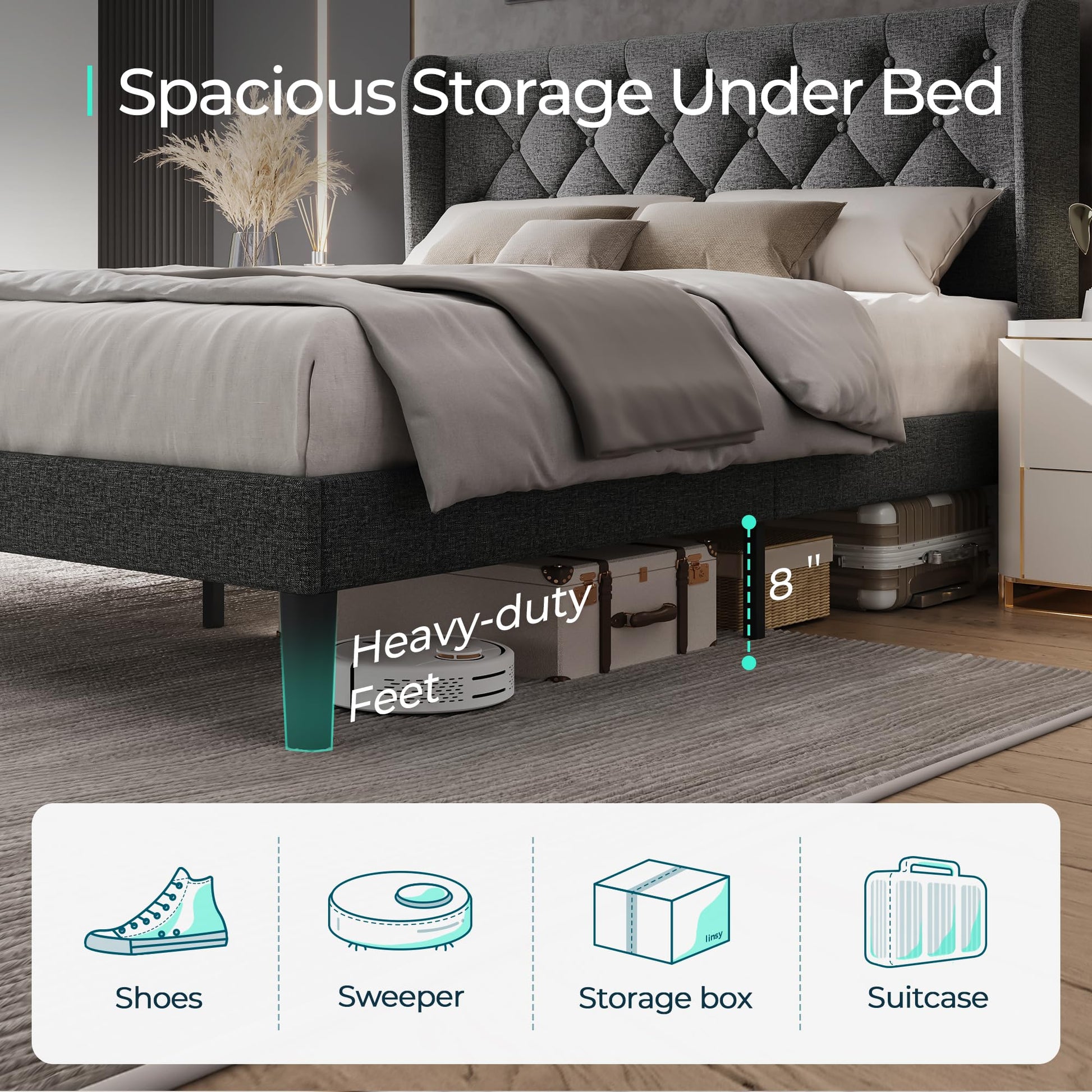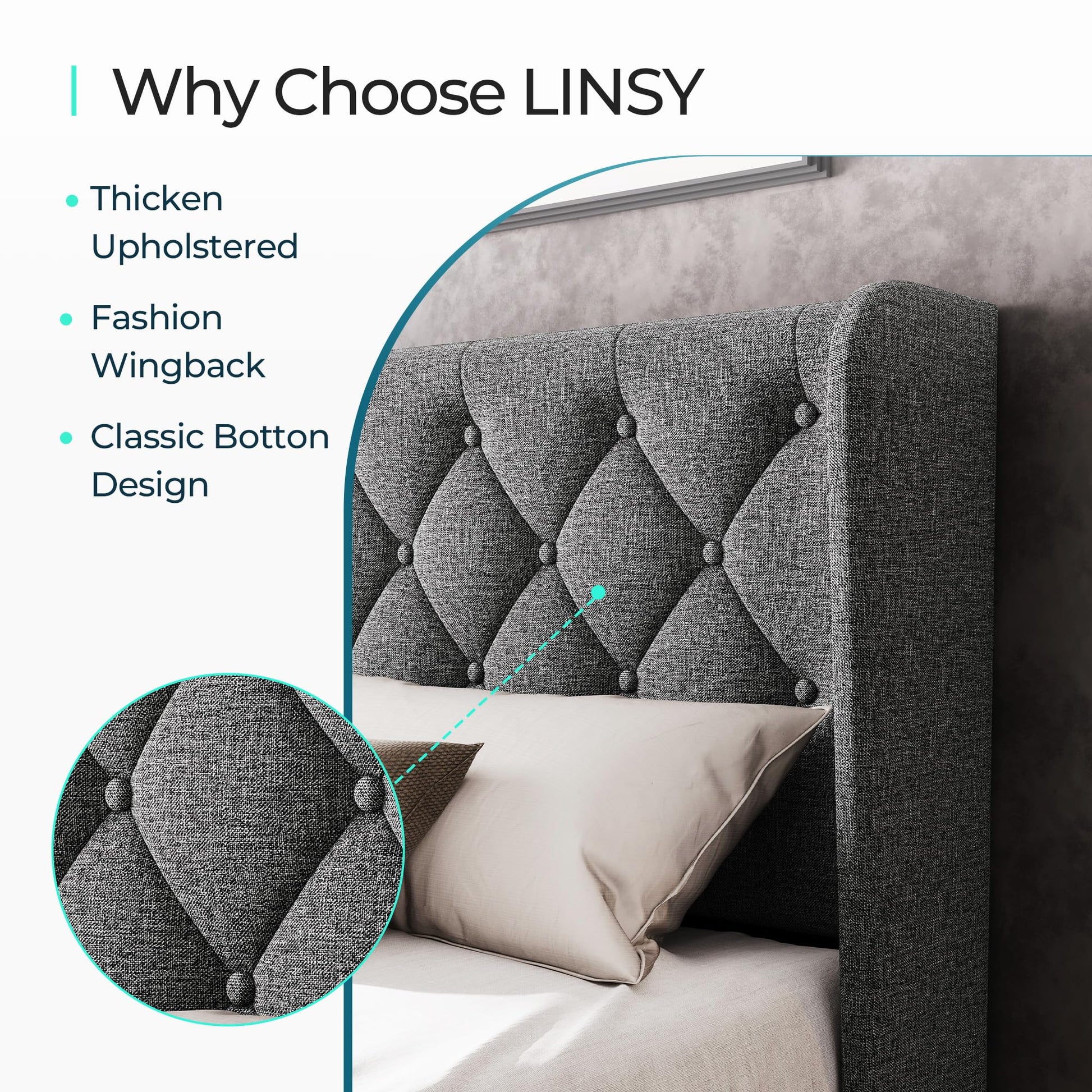- Comfortable Headboard with Wingback: Experience unparalleled relaxation with the LINSY bed frame. Unlike others upholstered with metal frames, ours boasts a wooden frame with high-resilience memory foam and premium linen upholstery. The stylish wingback headboard adds elegance and sophistication, make the bed more than a decor of the room.