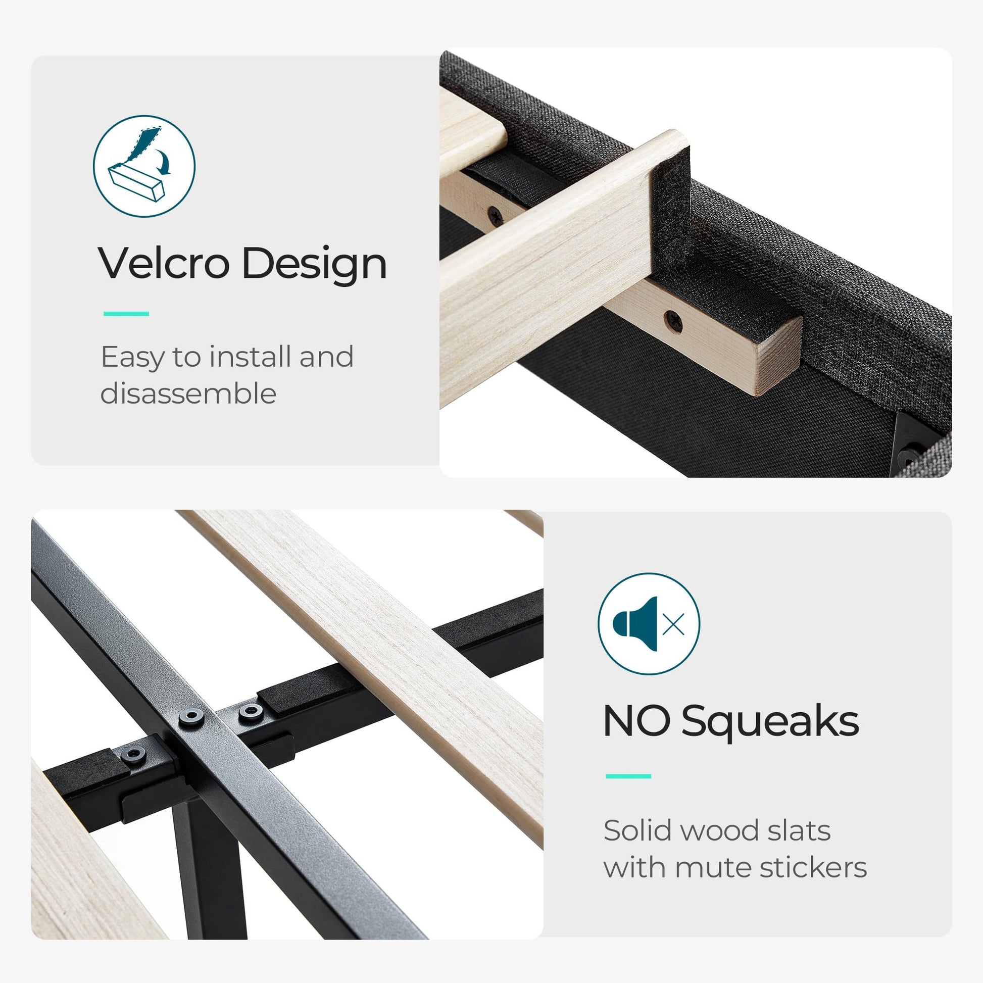 - Quiet Sleep without Noise: The wooden slats of this upholstered bed frame are specially designed with velcro and an EVA mute bar to prevent friction. In addition, the foot of the bed frame has non-slip feet pads to protect the floor and reduce noise.