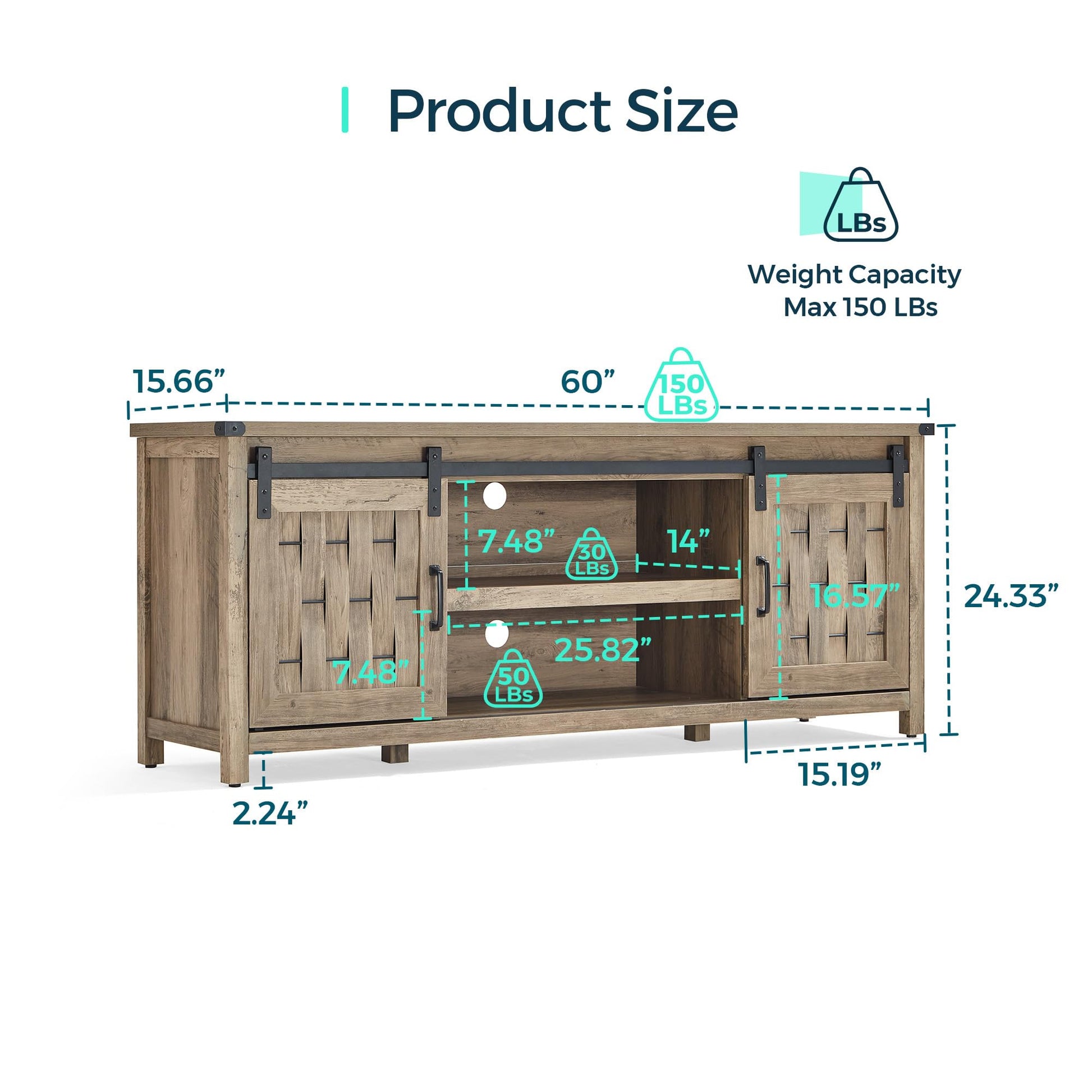 - Farmhouse Style Design - Featuring distinctive woven patterns, rustic wood grain finish, and iron-colored metal finishes, this farmhouse entertainment center adds character to your living room and bedroom