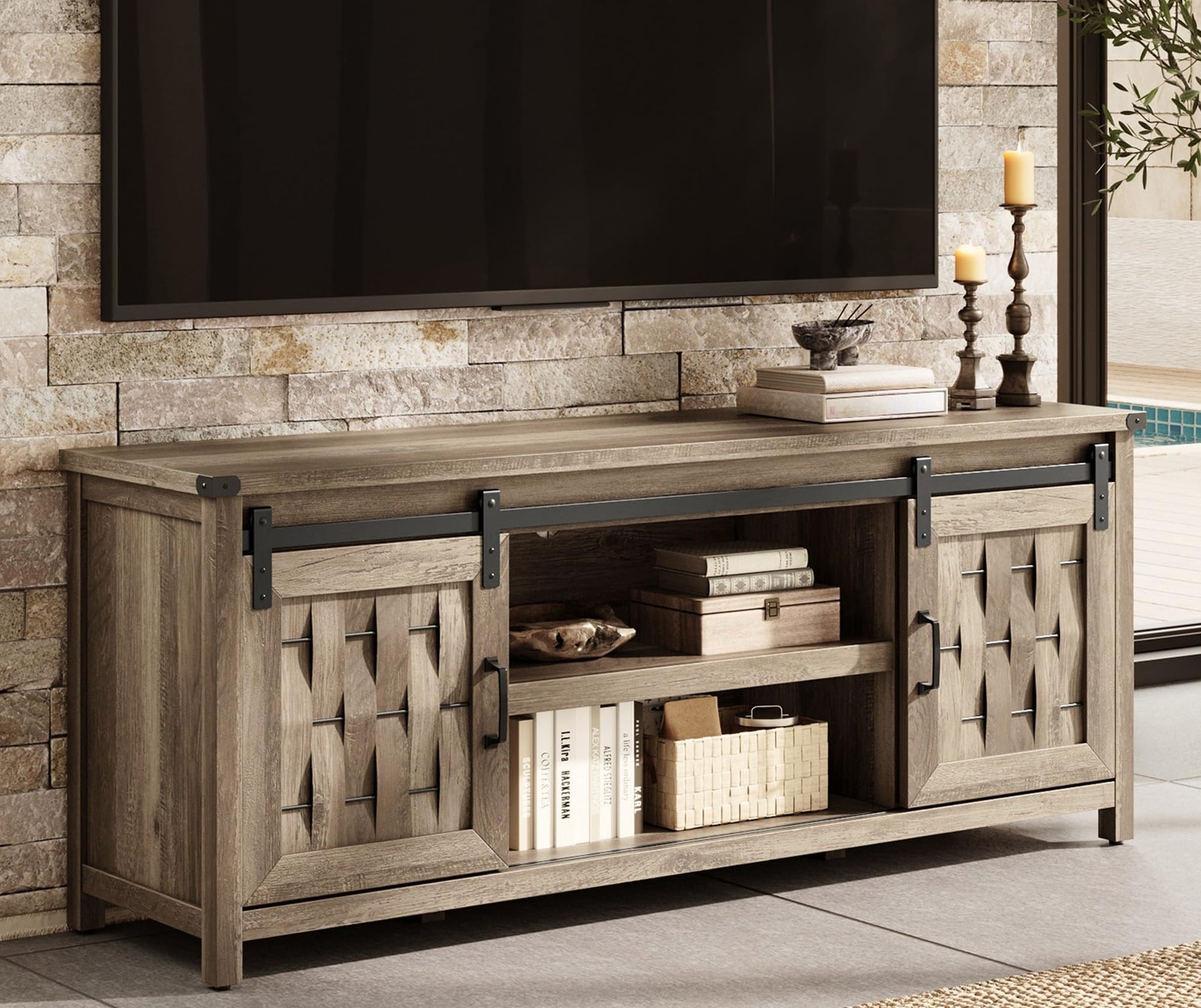 Farmhouse TV Stand for 65+ Inch TV, Entertainment Center with Sliding Barn Door, Media