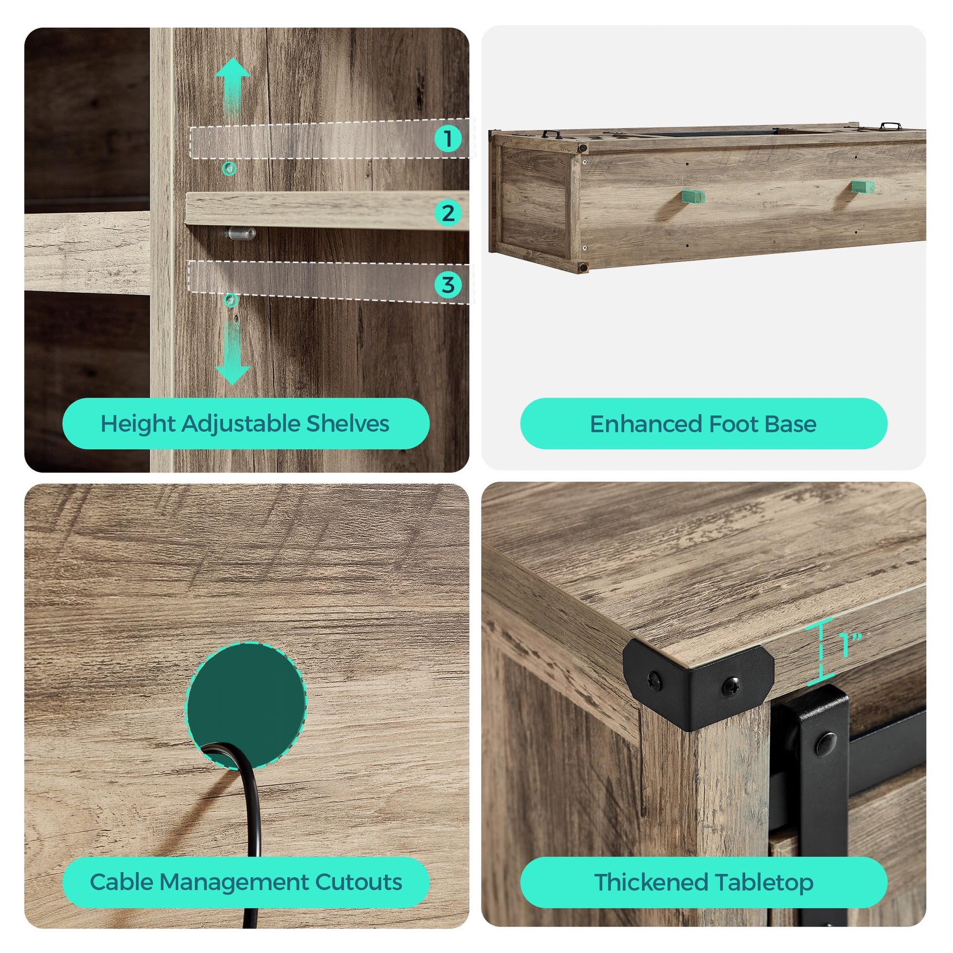 - Thoughtful Details - Sliding doors allow easy access to all necessities. Concealed circular cable holes for tidying up wires. Adjustable levelers on the legs minimize minor door misalignment caused by uneven floors