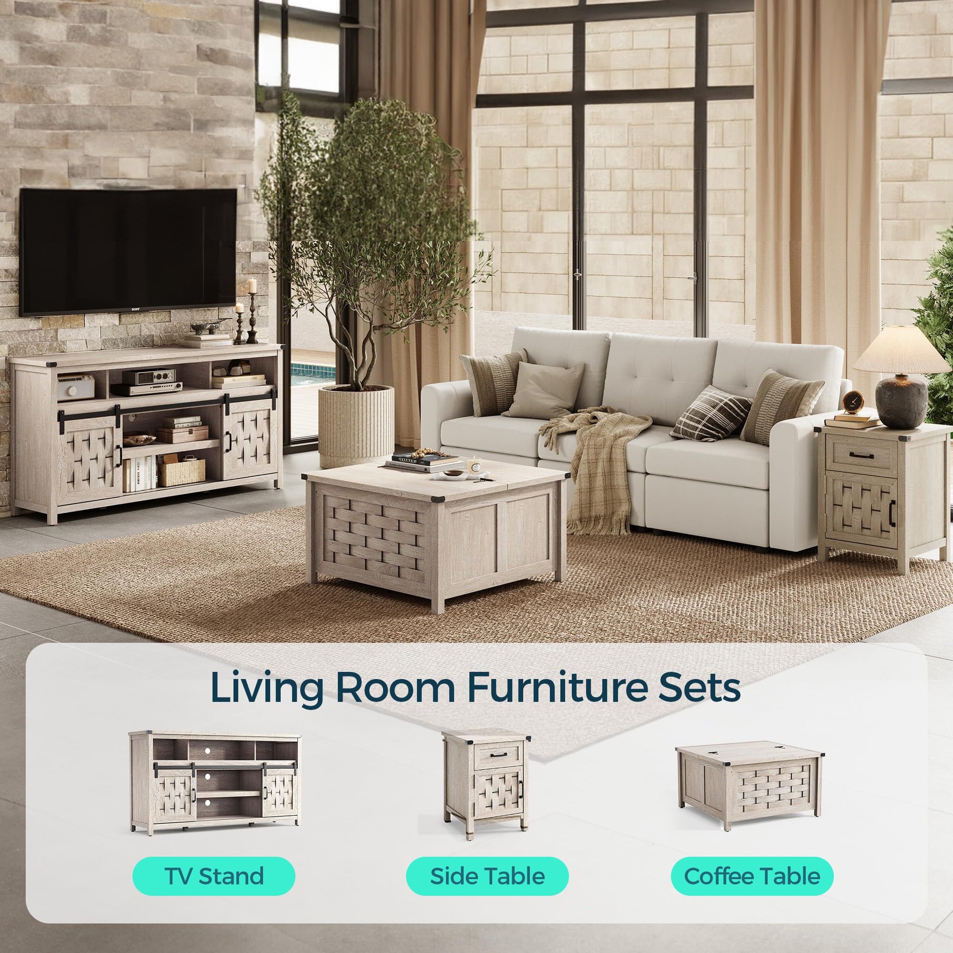 - Farmhouse-Inspired Design: With unique woven patterns, a rustic wood grain finish, and iron-colored metal accents, this entertainment center brings a touch of charm to both your living room and bedroom