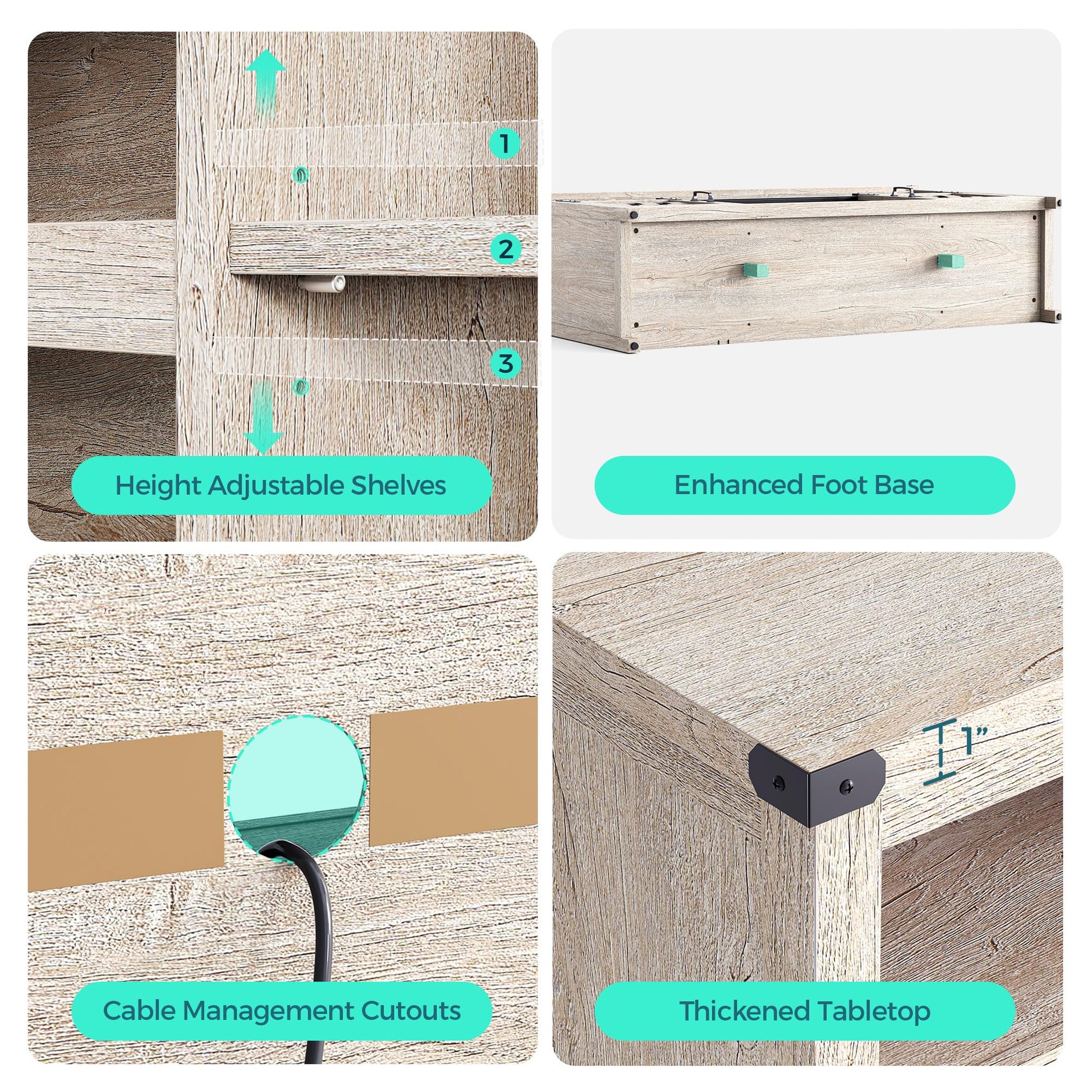 - Thoughtful Details - Sliding doors allow easy access to all necessities. Concealed circular cable holes for tidying up wires. Adjustable levelers on the legs minimize minor door misalignment caused by uneven floors