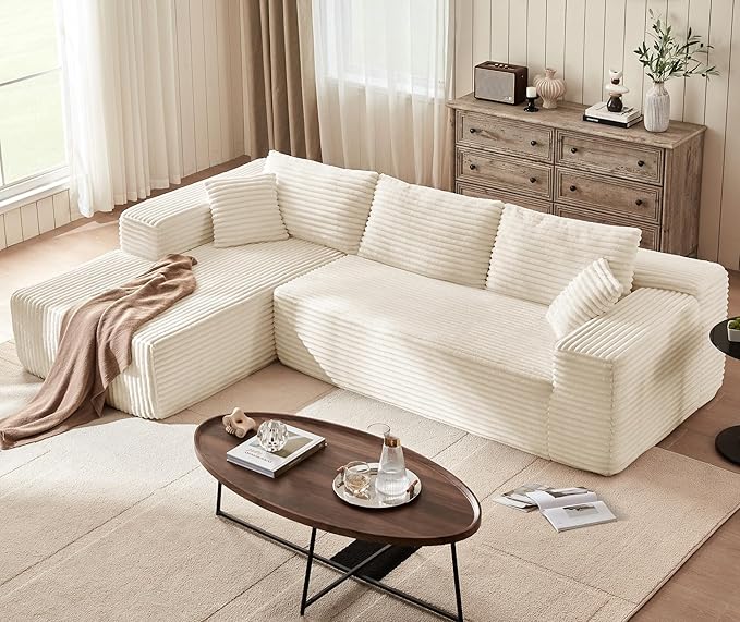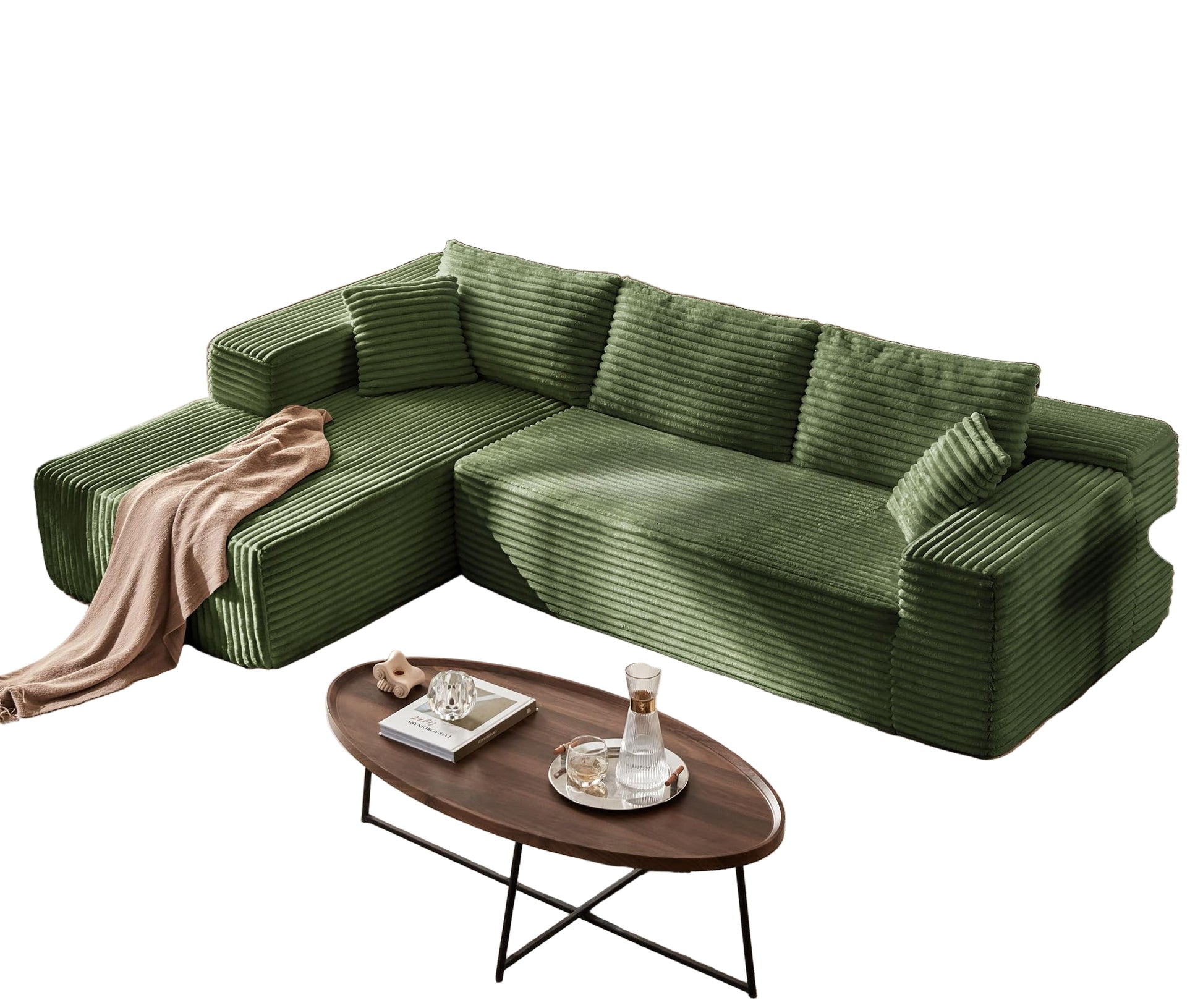 - Plush Corduroy Fabric: The l-shaped couch is made of luxurious plush corduroy fabric. The surface is rich, delicate, and soft, bringing a comfortable touch experience. The fabric is not easy to wrinkle and is very easy to clean, and it can still maintain a neat appearance after long-term use