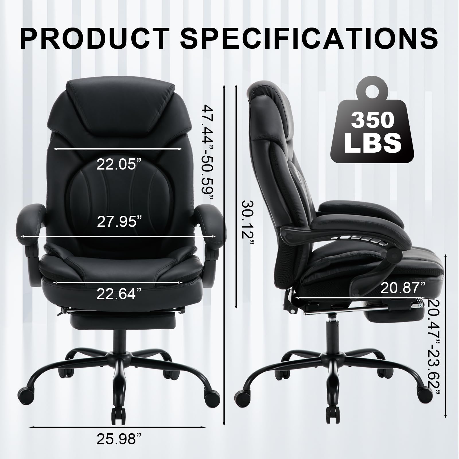 350lbs Reclining Office Desk Chairs with Back Support Footrest, PU Leather Wide