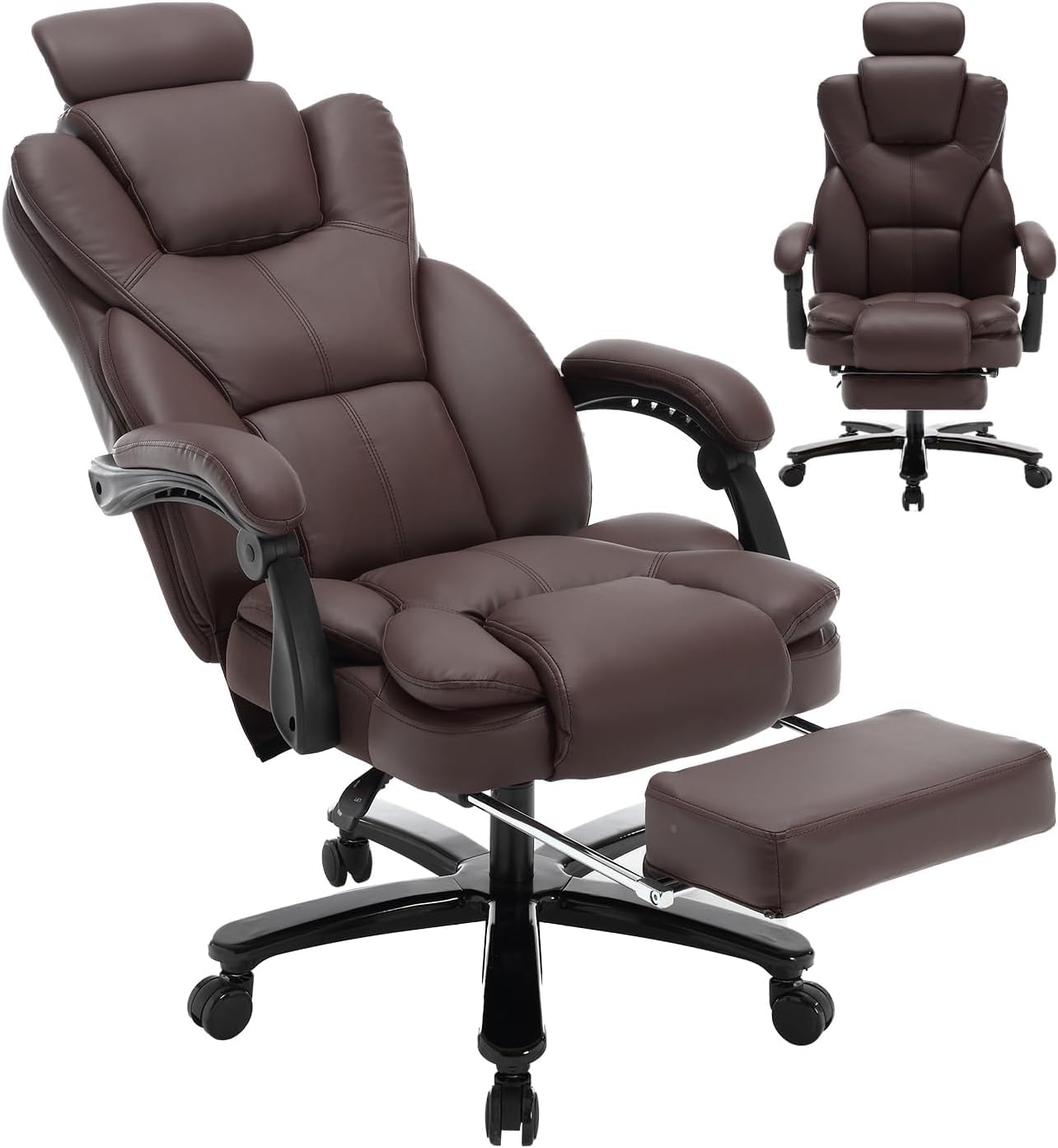 High Back 400lbs Big and Tall Reclining Executive Office Chairs with Footrest Headrest,