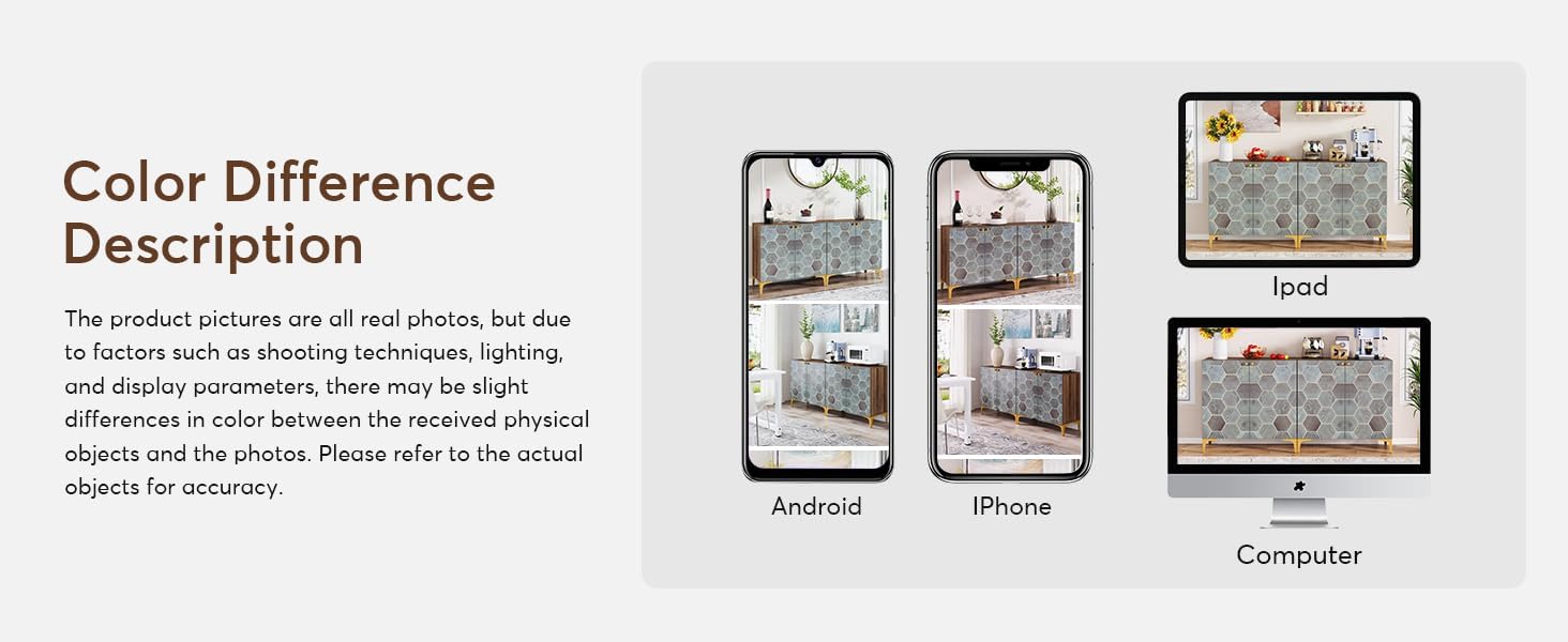 - Free Combination - With two independent buffet cabinets that can be opened separately, you can easily customize your storage and access your belongings with ease.