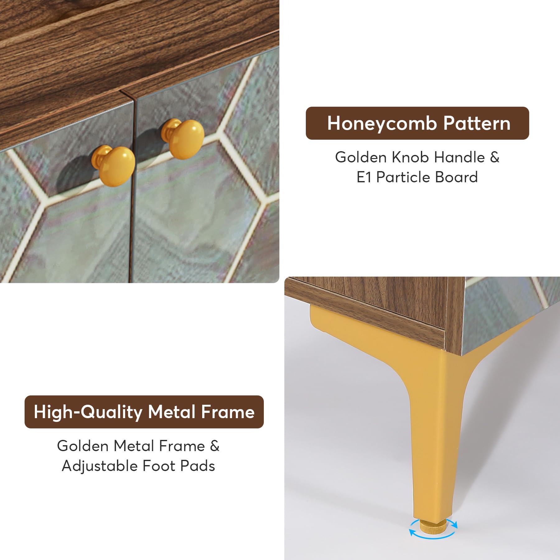 - Stylish and Unique Design - The sideboard buffet cabinet features a colorful hexagonal design that adds a touch of modern elegance to any room.