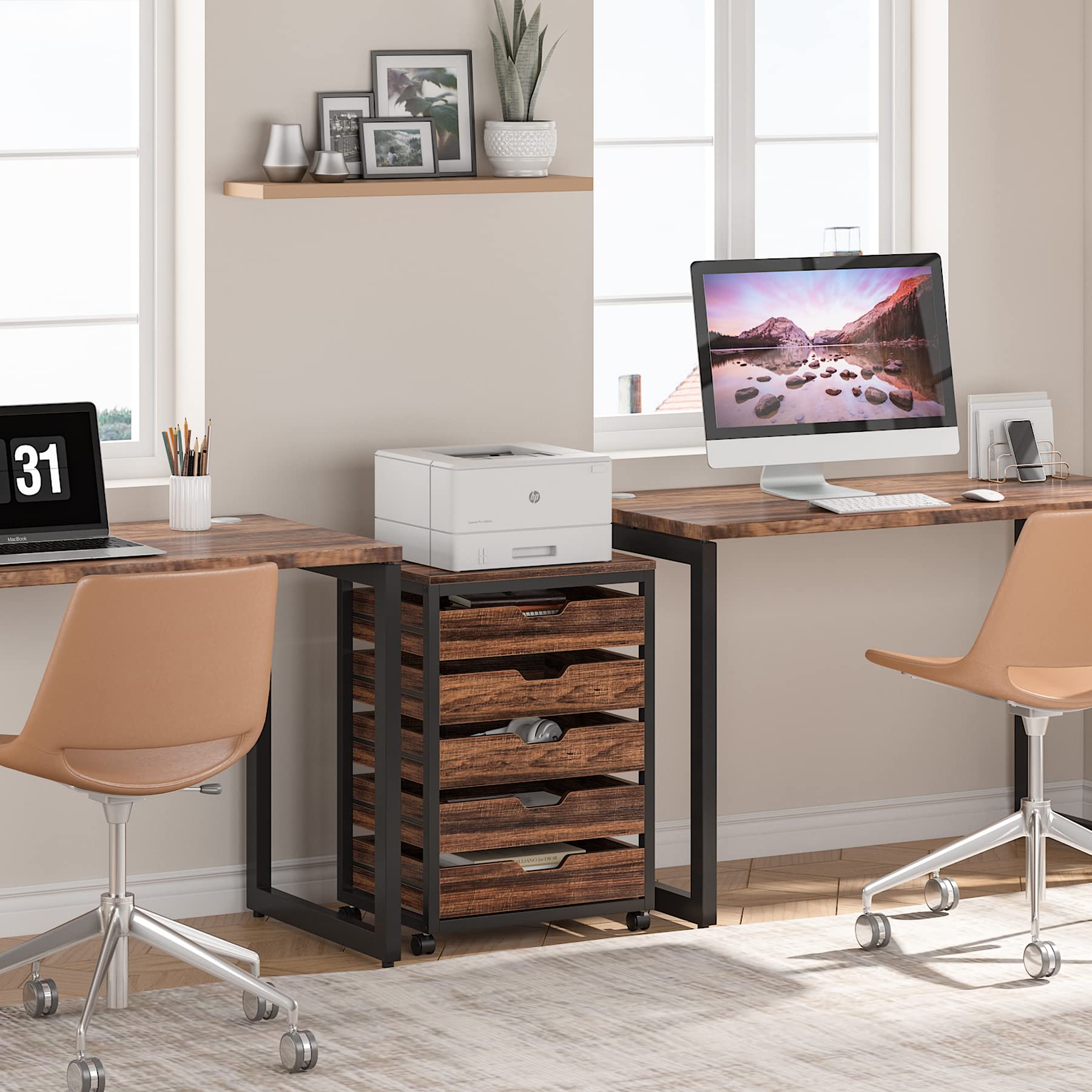 - Spacious Storage: The five drawers roll open on metal slides, revealing ample space for arts and crafts, cosmetics, clothes, and office supplies. 19.69" x 15.75" Top can hold your printer or scanner and so on