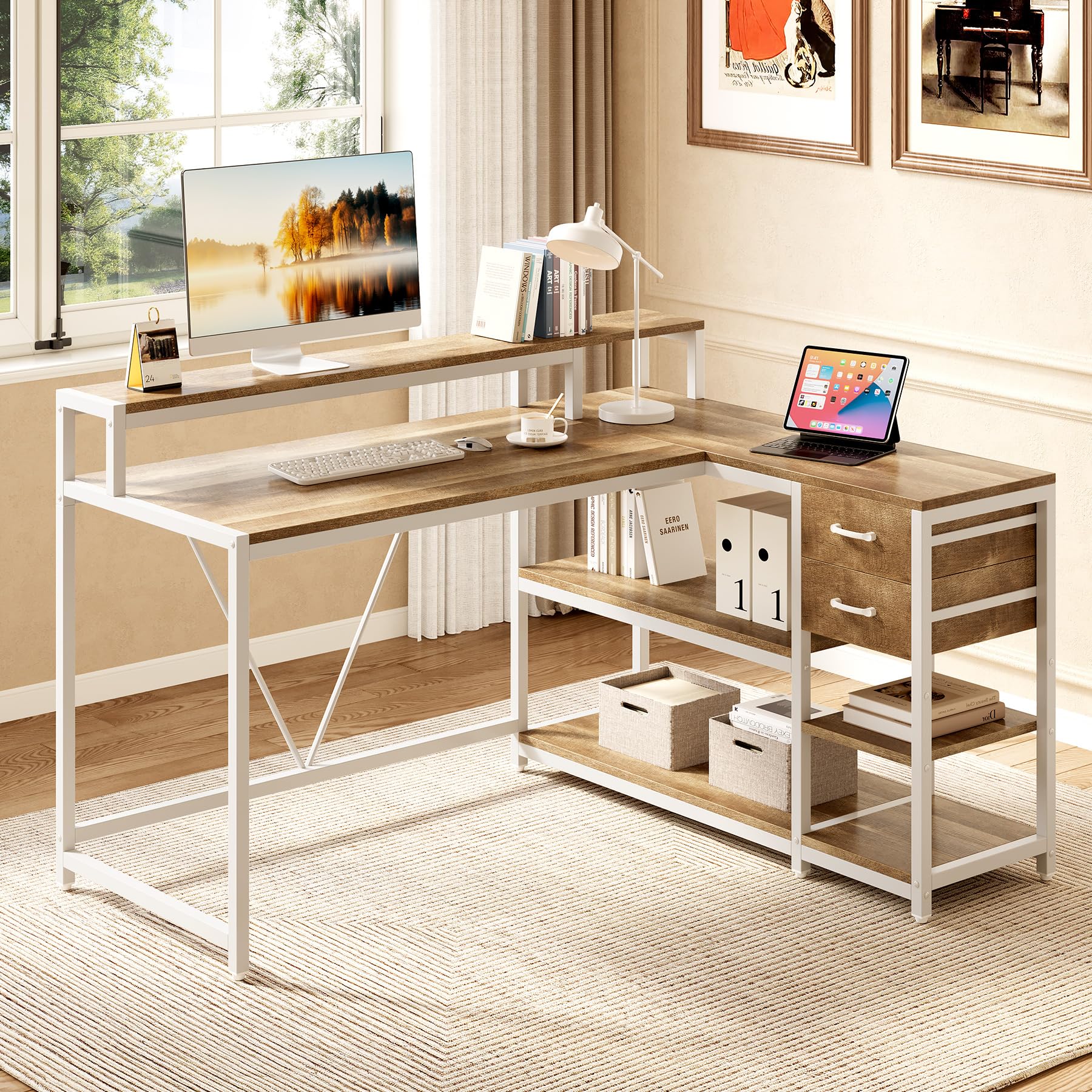 55-Inch L-Shaped Computer Desk, Reversible Computer Desk with Drawers