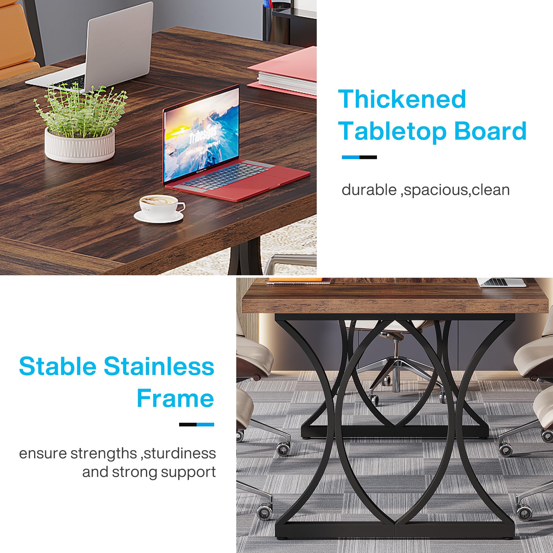 - Tailored not only for the home office, this desk is an excellent choice for conference rooms. Catering to up to six individuals, it fosters a conducive and collaborative atmosphere for meetings, brainstorming sessions, or team projects.