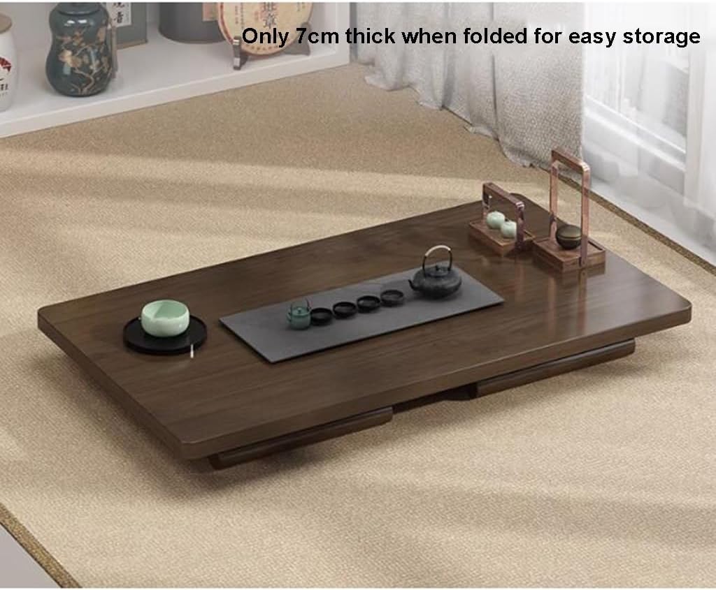 - This small coffee table is made of high quality bamboo. Selected varnish spraying, spacious tabletop, only 7cm thickness after folding, easy to store anywhere.