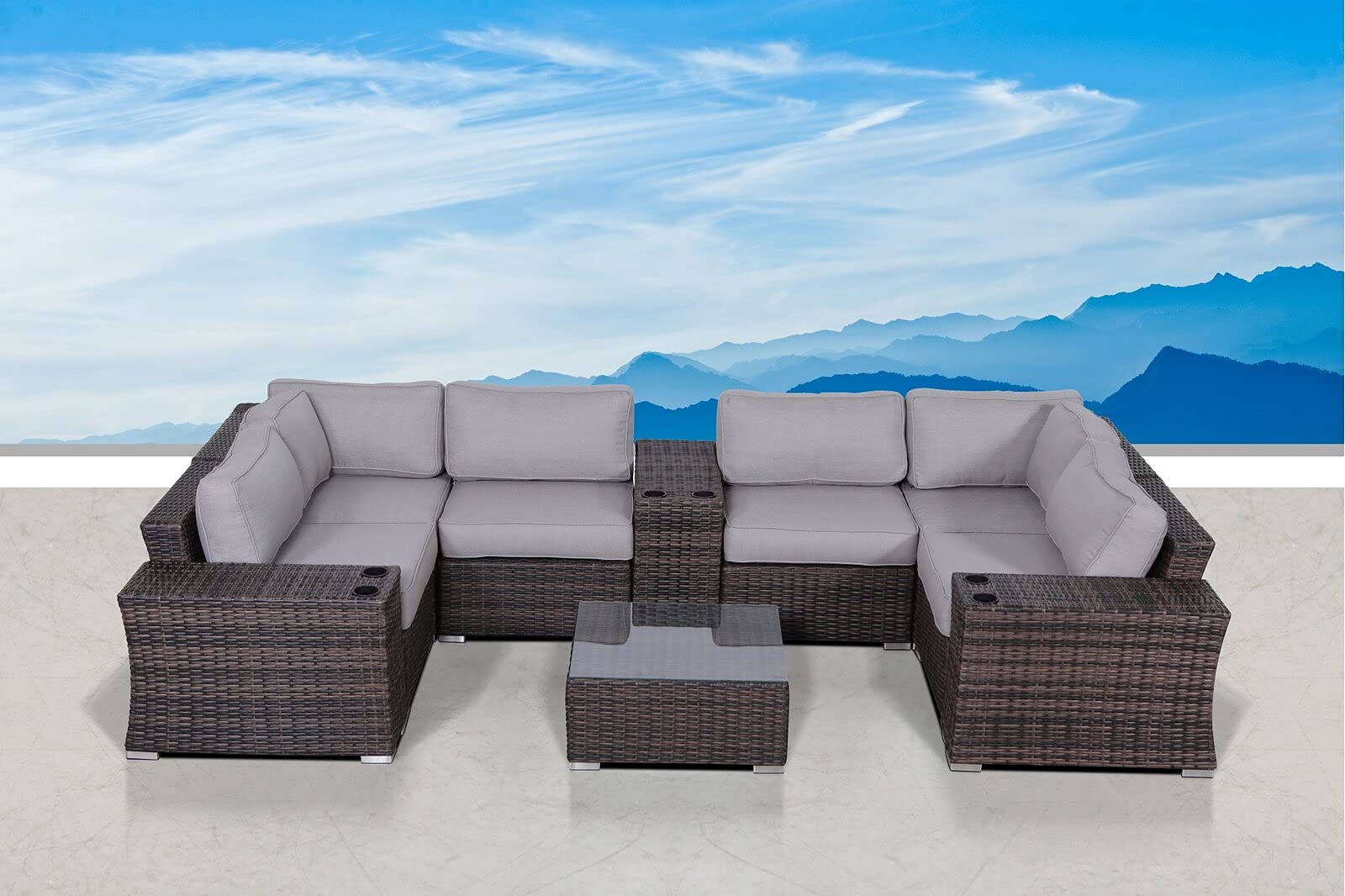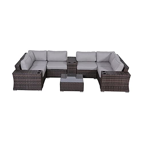 Outdoor Patio Furniture Sets [CM-9080] Brown 10 Piece Sectional Seating Group