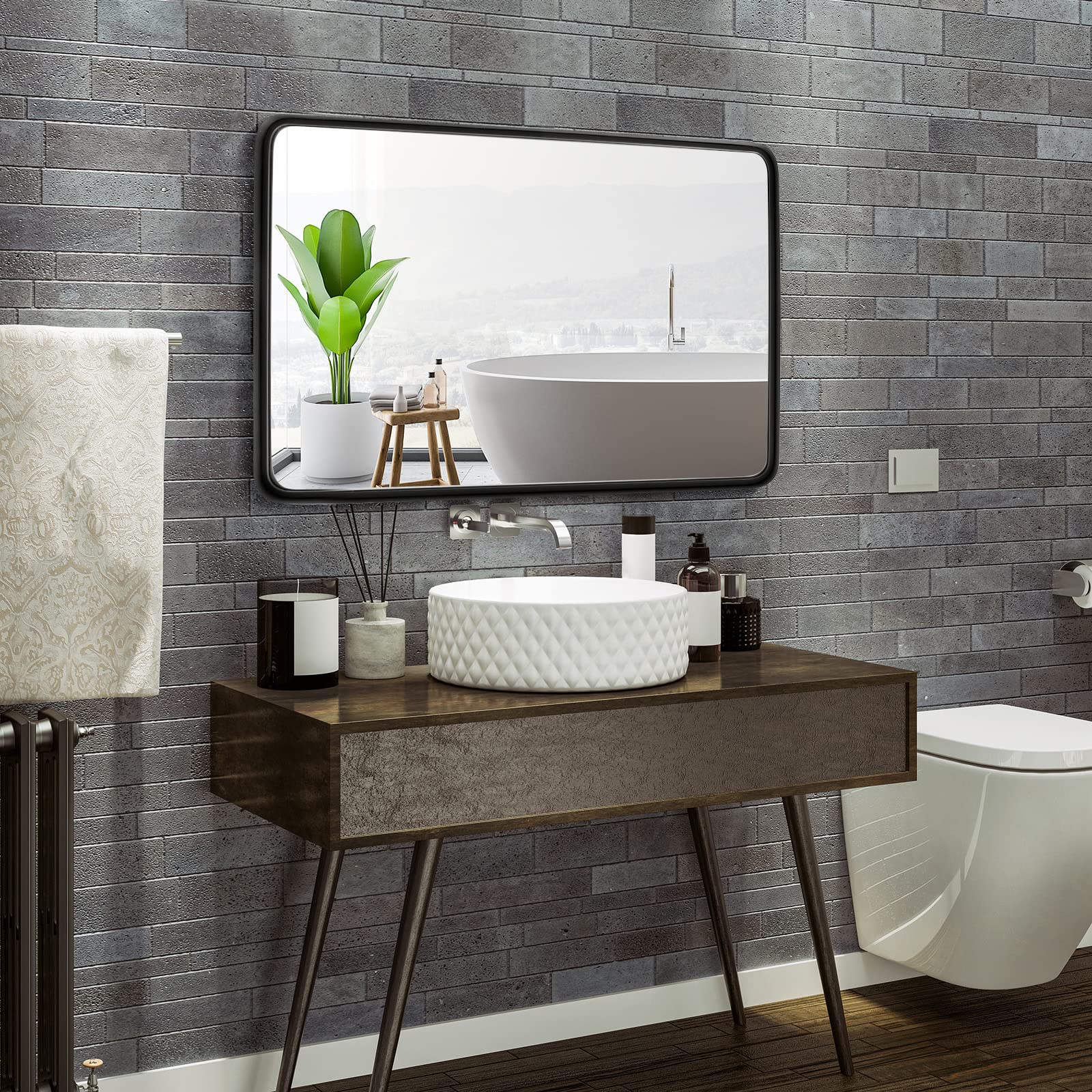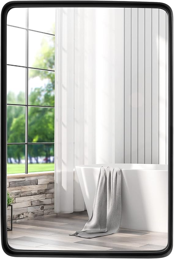 - Elegant Appearance: The matte black metal frame, clean lines and rectangular shape endow the small wall mirror with appealing modern style, creating a timeless artwork decoration. Besides, the floating gap and rounded corners add a sense of soft aesthetic. Overall dimension: 36” x 24”x 2” (L x W x H)
