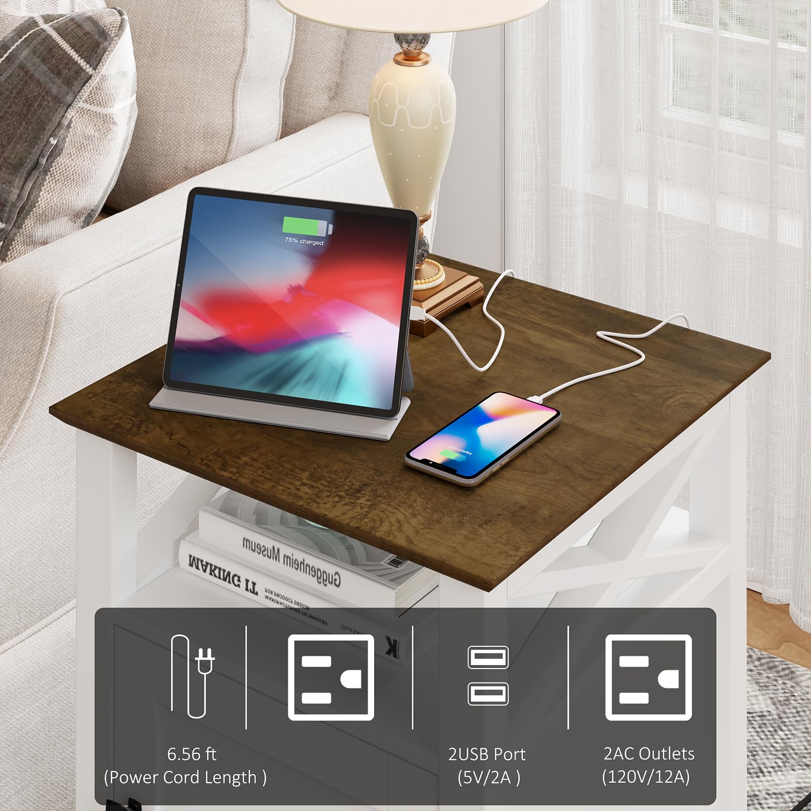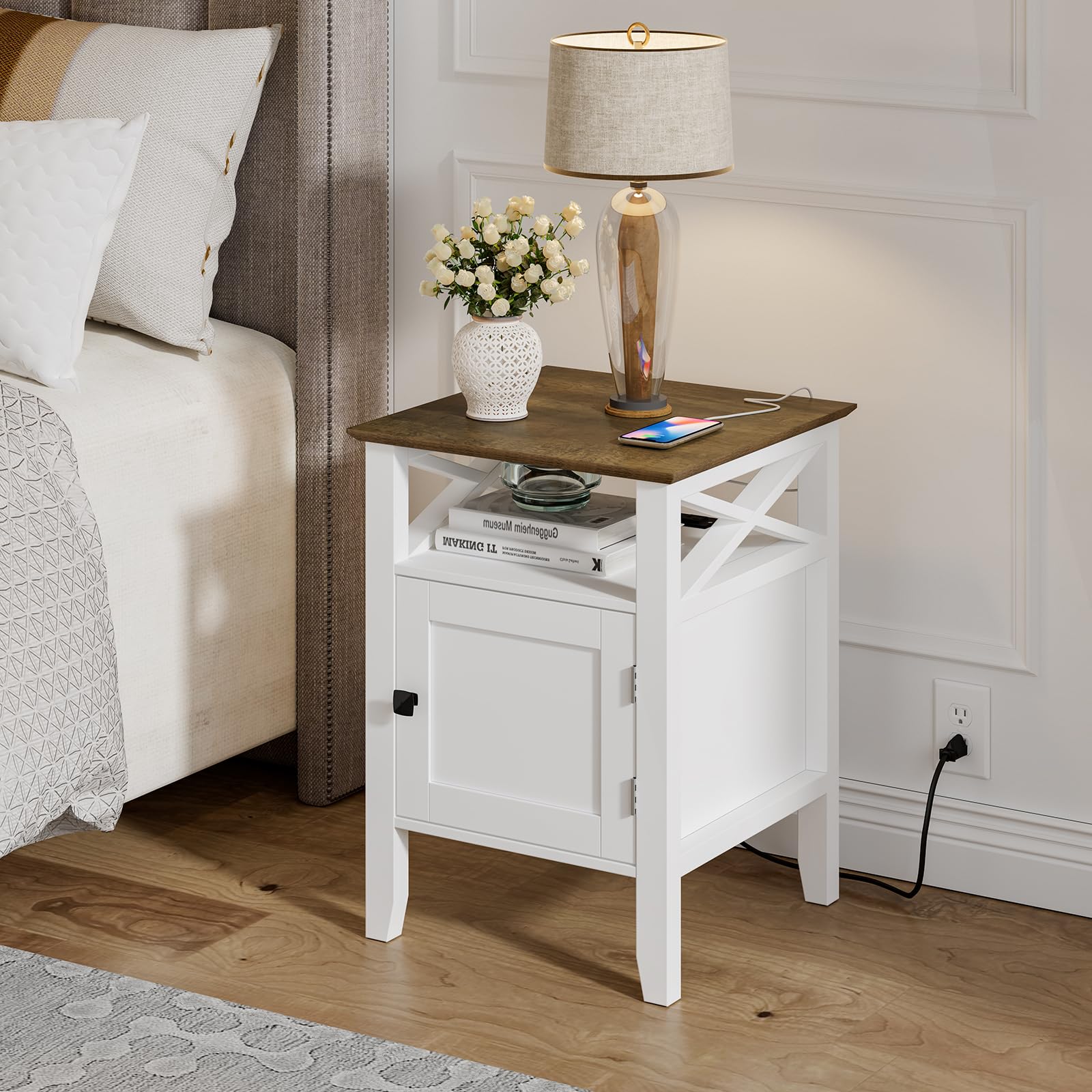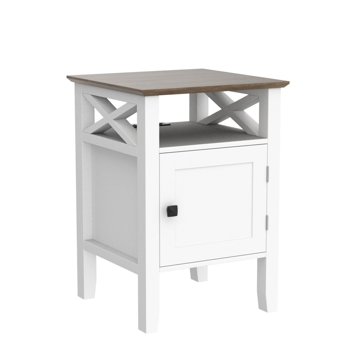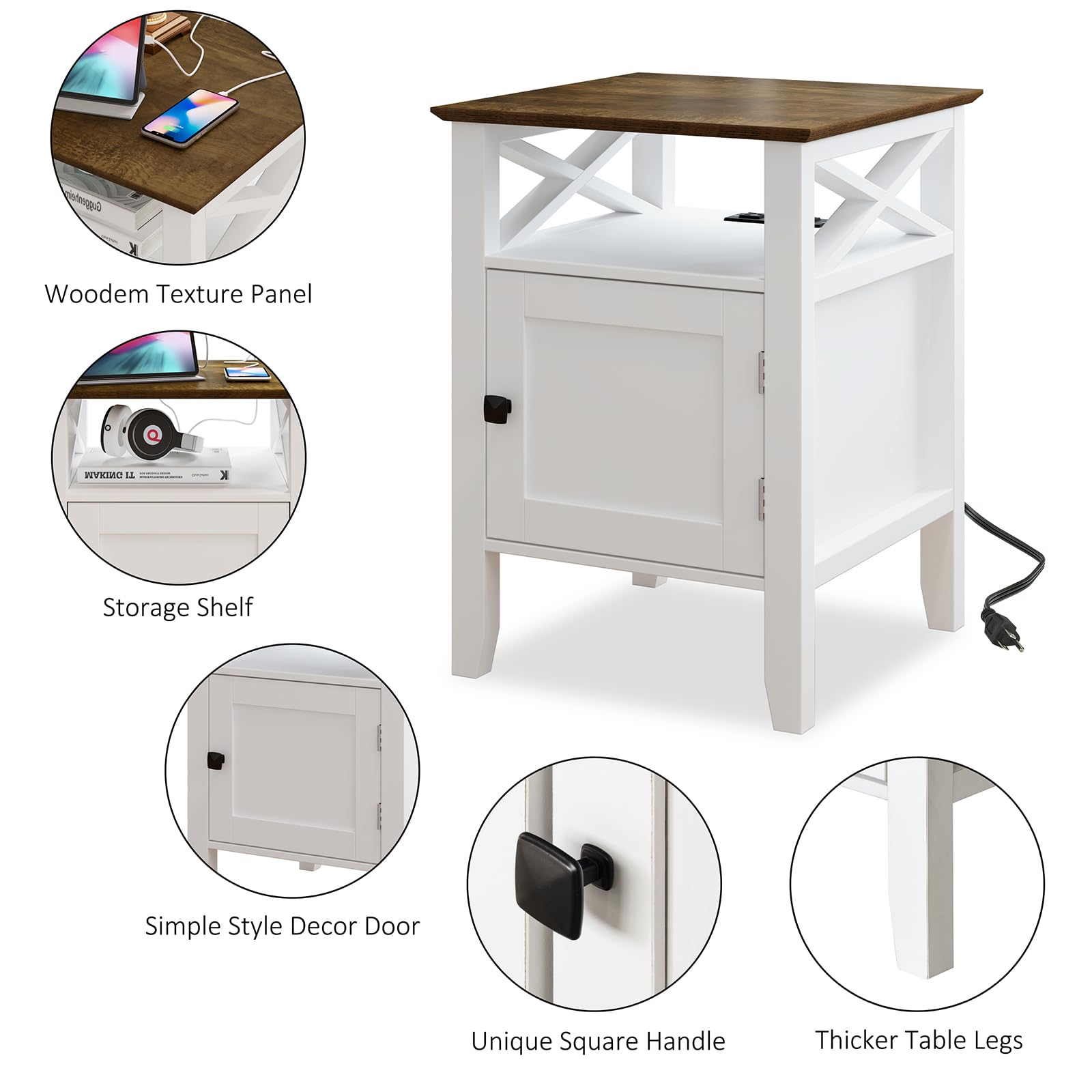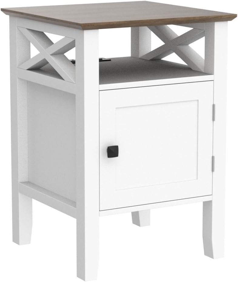 Night stand with Charging Station, Bedside Table 17.8" L x 17.8" W x 23.62" H White