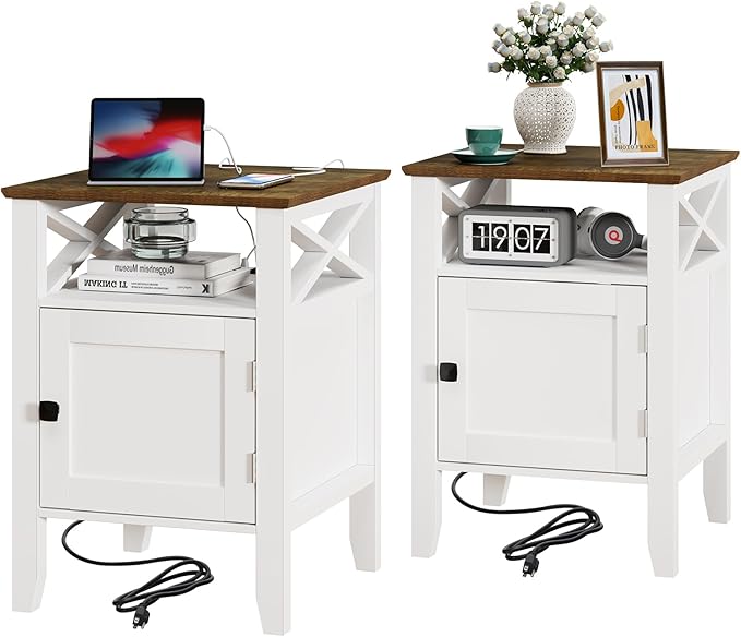 - This night stands for bedrooms with 2 AC outlets and 2 USB ports, making it a versatile addition to your home. Whether you need a white nightstand, a large bedside table, a sofa side table, or an end table, these nightstands can meet your various needs. The versatile design makes it perfect for use in the living room or bedroom. The natural color of the nightstand makes it easy to match with any decor, and you can style it with anything.