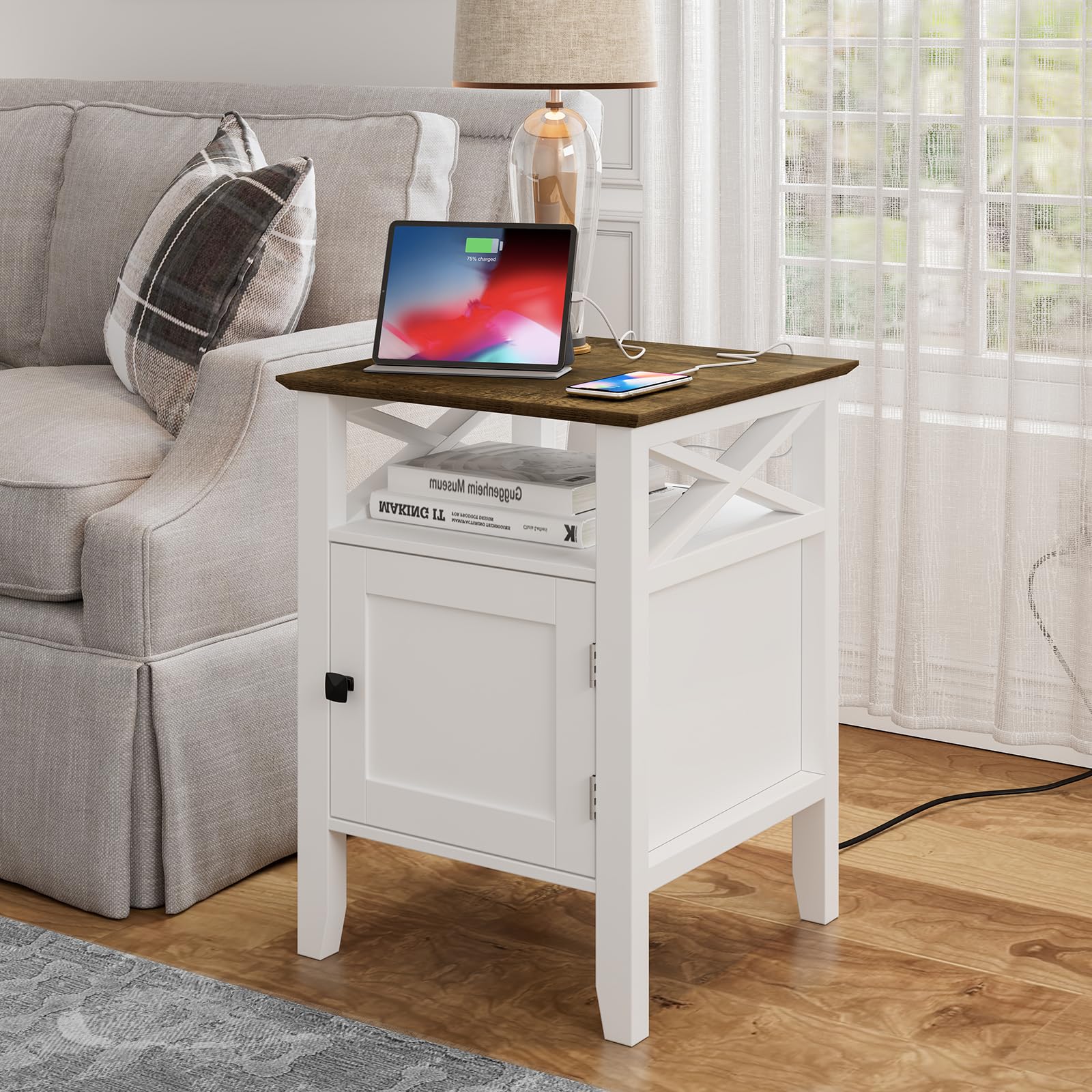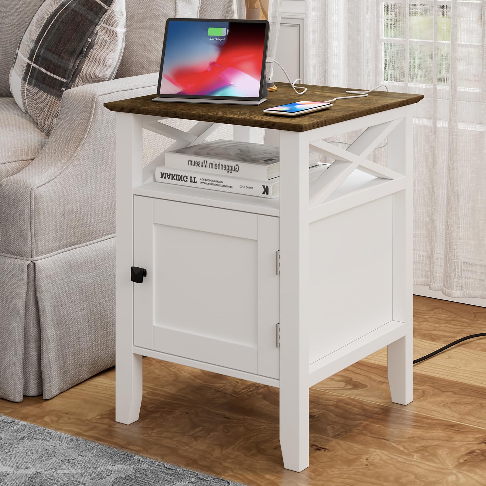- Upgrade your home decor with Lomojo's End Table Nightstands - side table with built-in charging stations. Beyond aesthetics, these bedside table offer incredible convenience and functionality. The small side table is perfect for keeping phones and other devices charged and within easy reach.