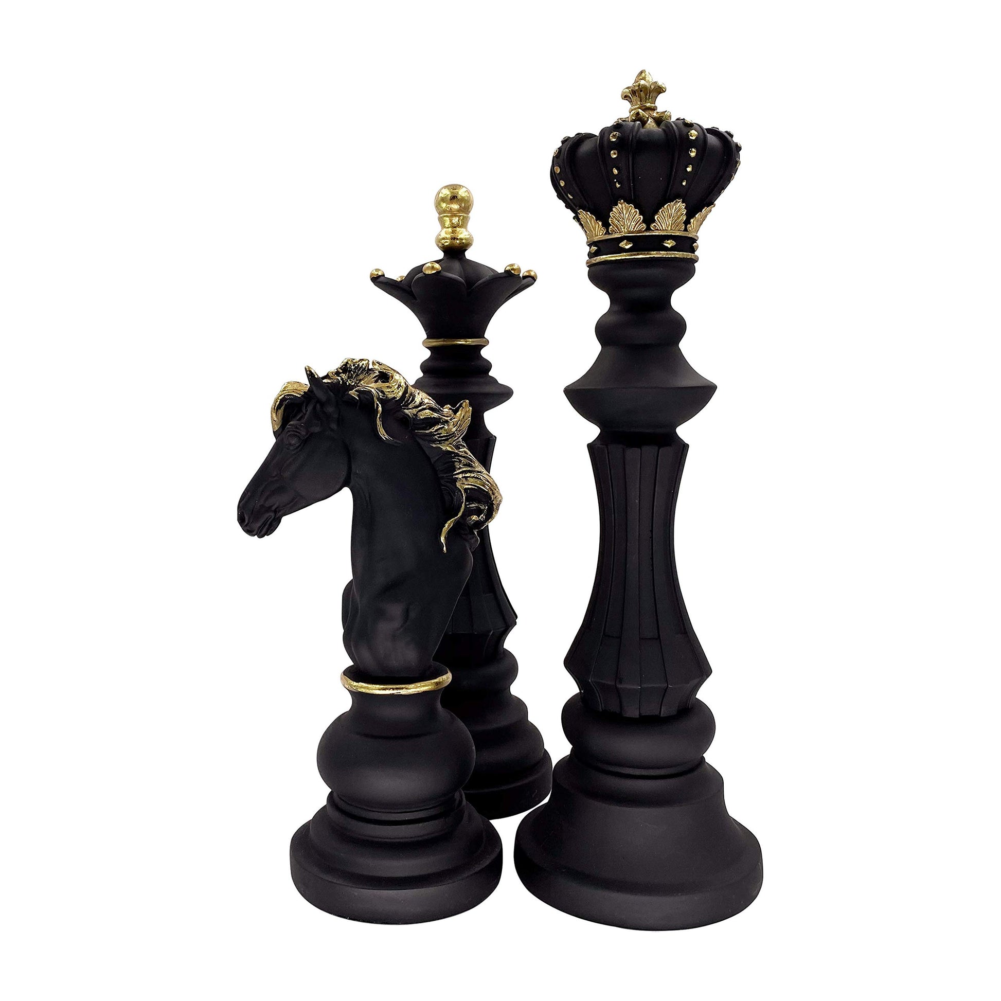 - Retro and creative decoration. The black and gold chess piece shapes will bring an impressive focal point to your home and office. Placed in the corner, it will immediately attract the attention of guests.