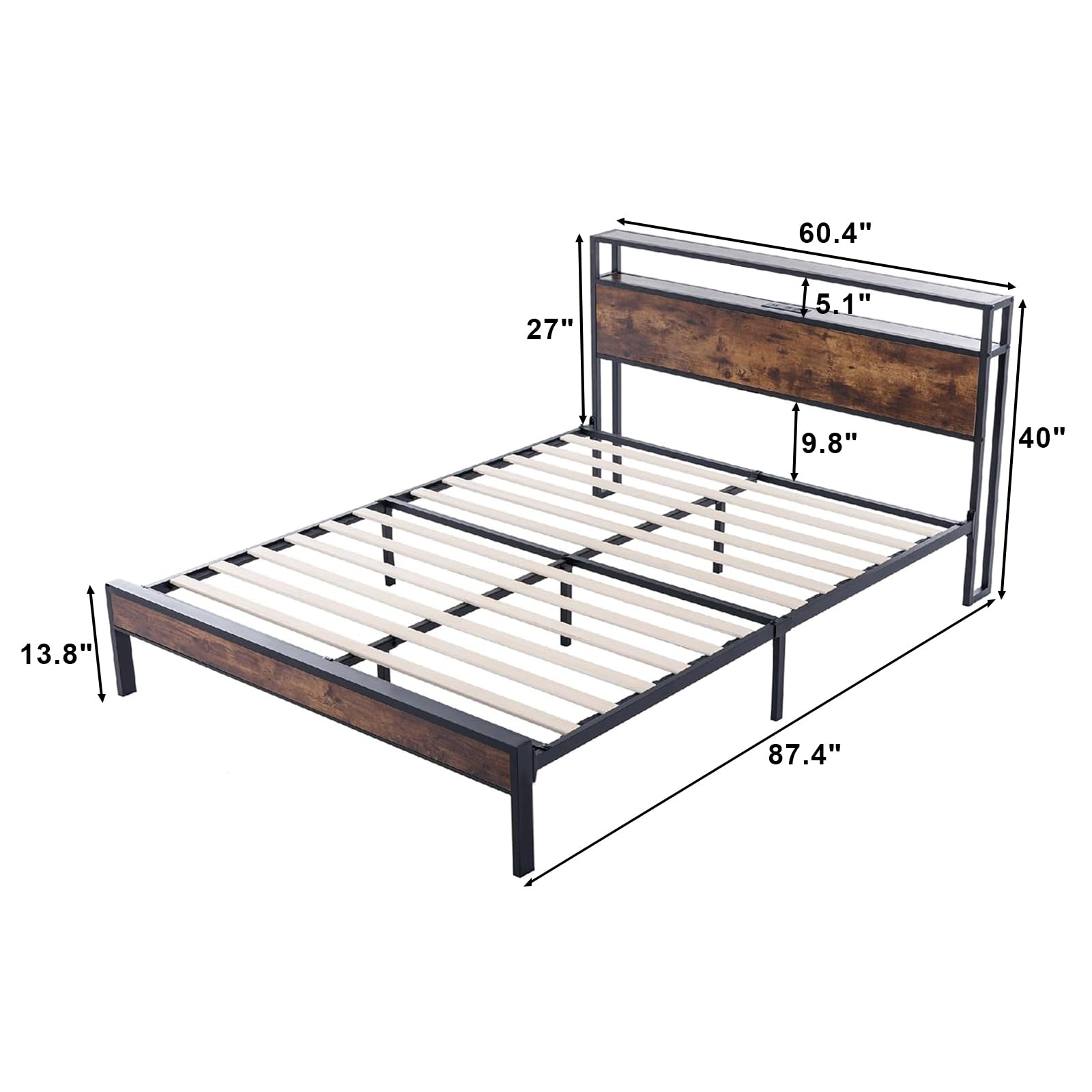 - 【Modern Style】 The bed frame features vintage wood headboard and footboard mixed with black metal, looking classic and elegant, perfect for your bedroom. All metal slats are coated with anti-rust powder to extend service life.