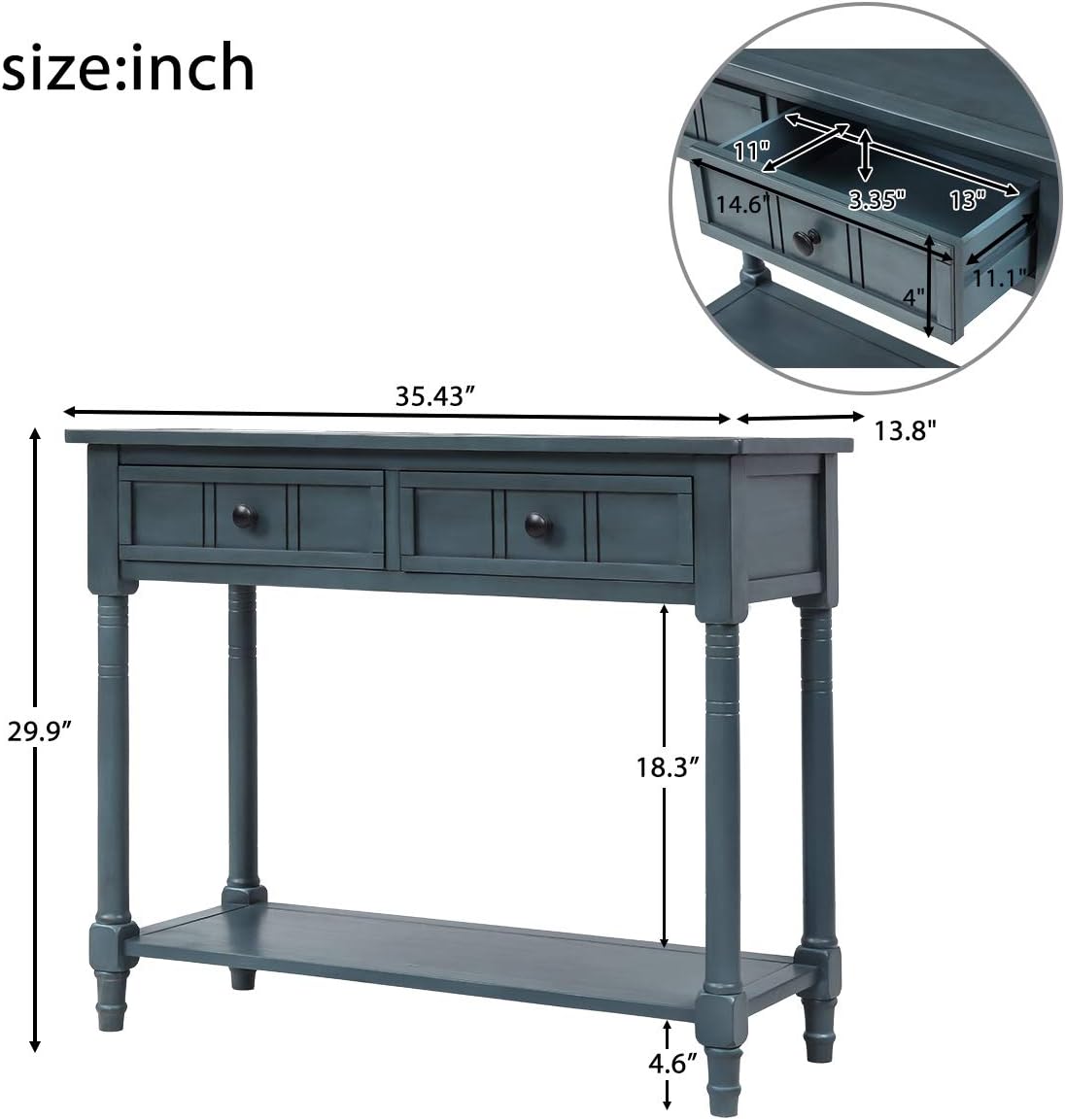- Console table overall dimensions:35.43" L x 13.8" W x 29.9" H; manufactured for user-friendly assembly, simply attach the legs and shelf