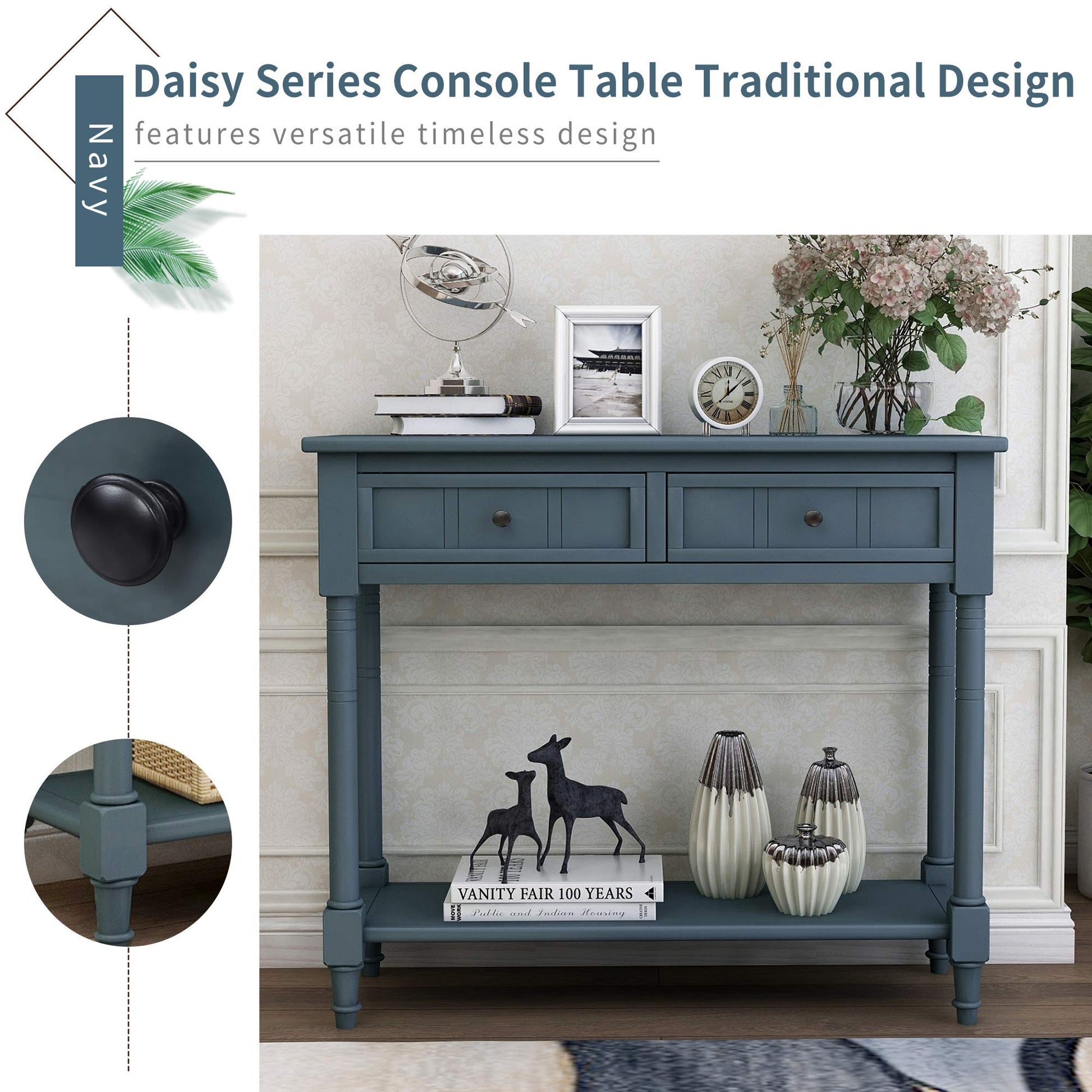 - The sofa table With 2 spacious storage drawers allows for concealed organization, thick bottom display shelf tastefully showcases décor