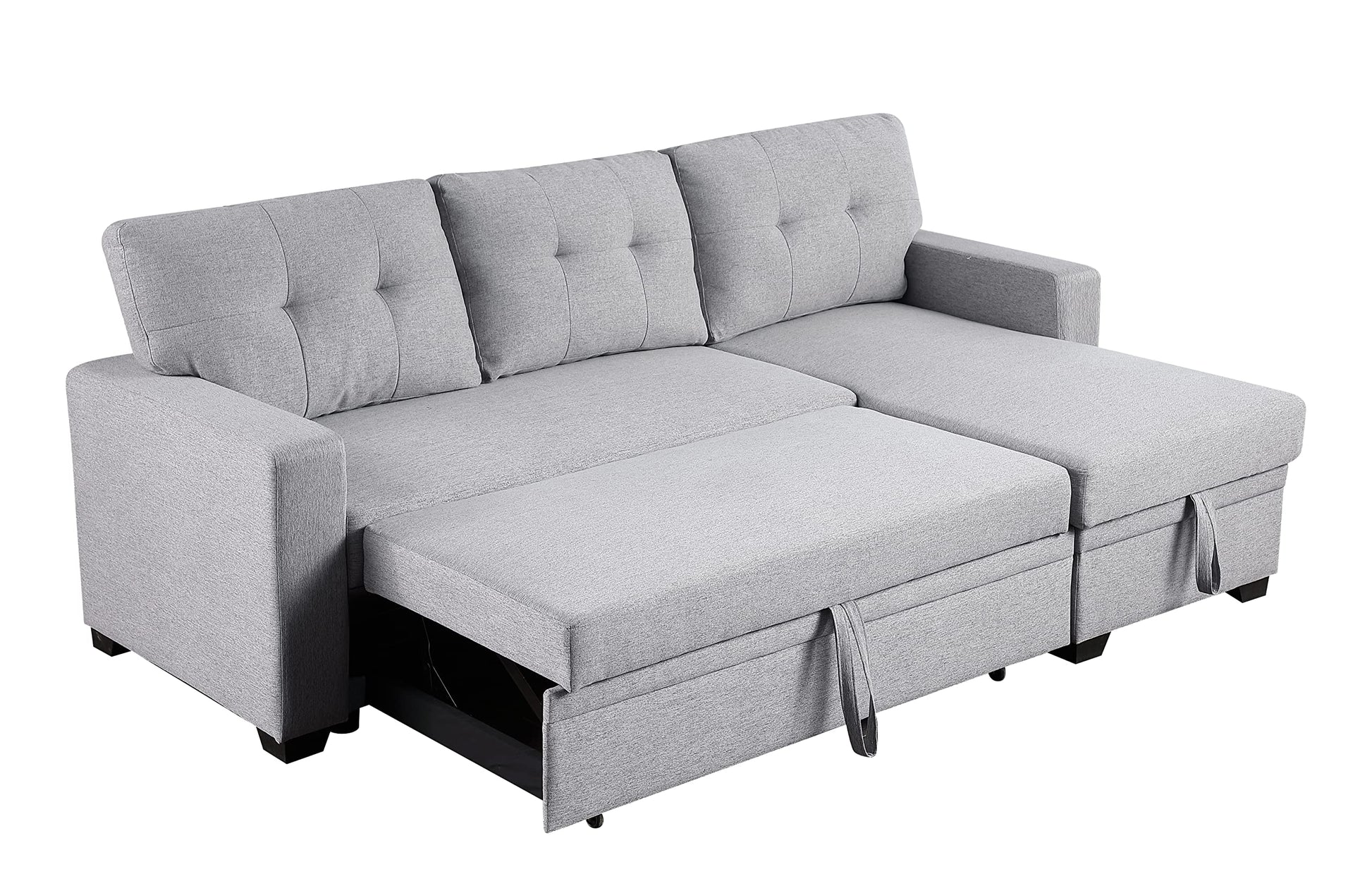 82 inch Convertible L Shaped Sleeper Sectional Sofa Linen