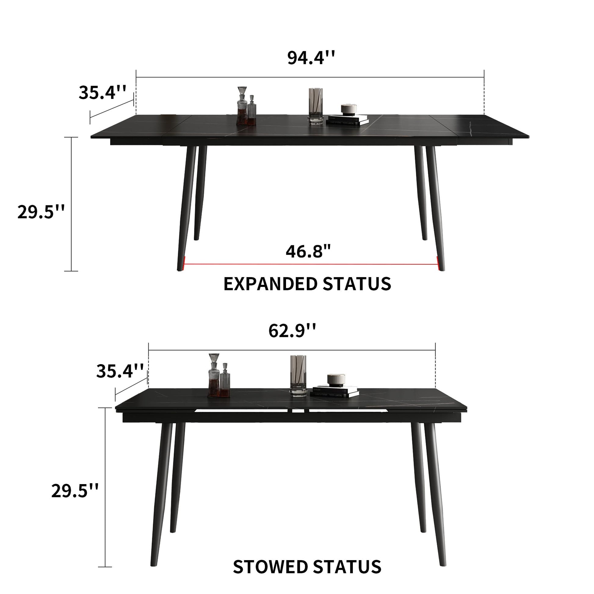 62.9'' to 94.4'' Extendable Dining Tables for 4 to 8 - New sintered Stone Material Rectangle