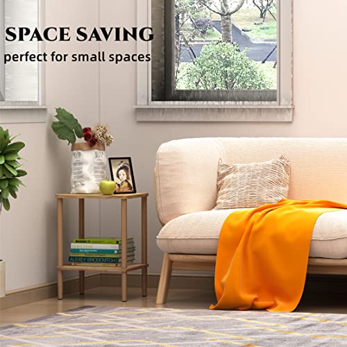 - Space Saving Standing at 15.7”W x 11.8”D x 20.8”H, this small end table has a slim design that fits perfectly in small spaces. Works great as night stand in your bedroom to hold bedside lamp, phones and eye masks, sofa side table in the living room to put snacks and remote control on hand, casual table in the garden or patio,it only takes little floor space but meets your daily demands.