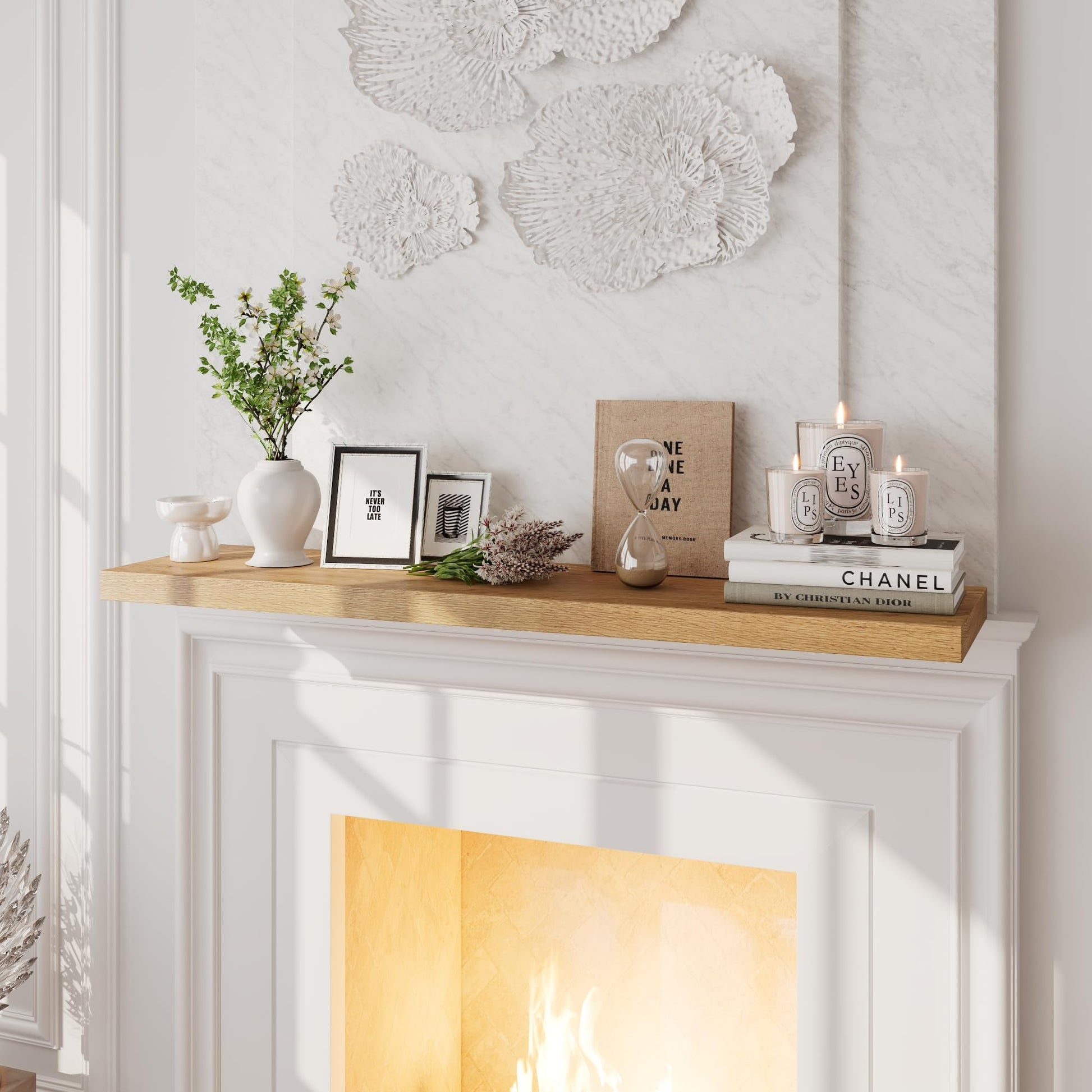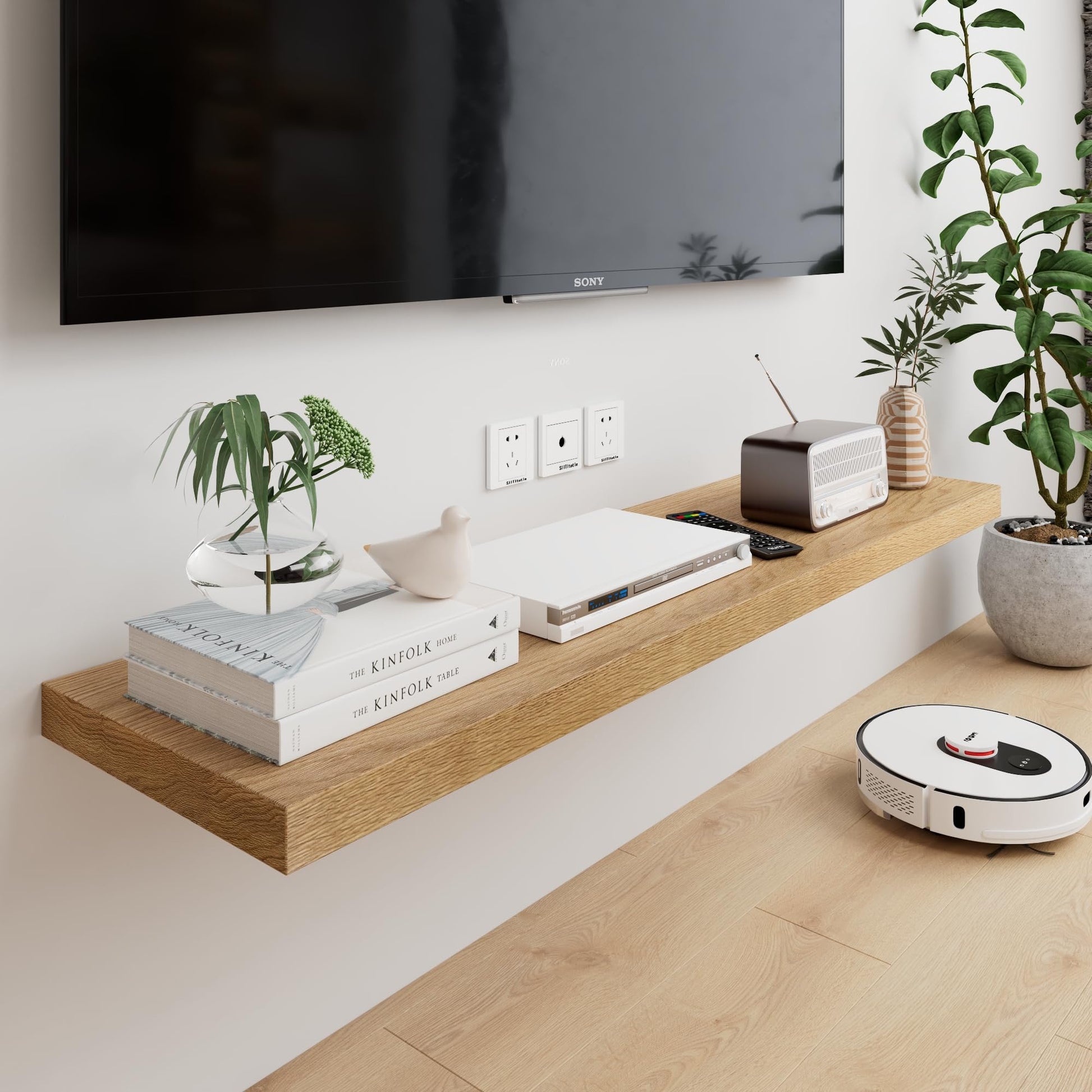 - The 36" long shelf for wall can be the focal point and is suitable for living rooms, bedrooms, offices and more.The shape is simple and atmospheric, 100% oak material can be installed under the TV, as a TV stand. Used as a mantelpiece, it is also excellent and looks very heavy duty.