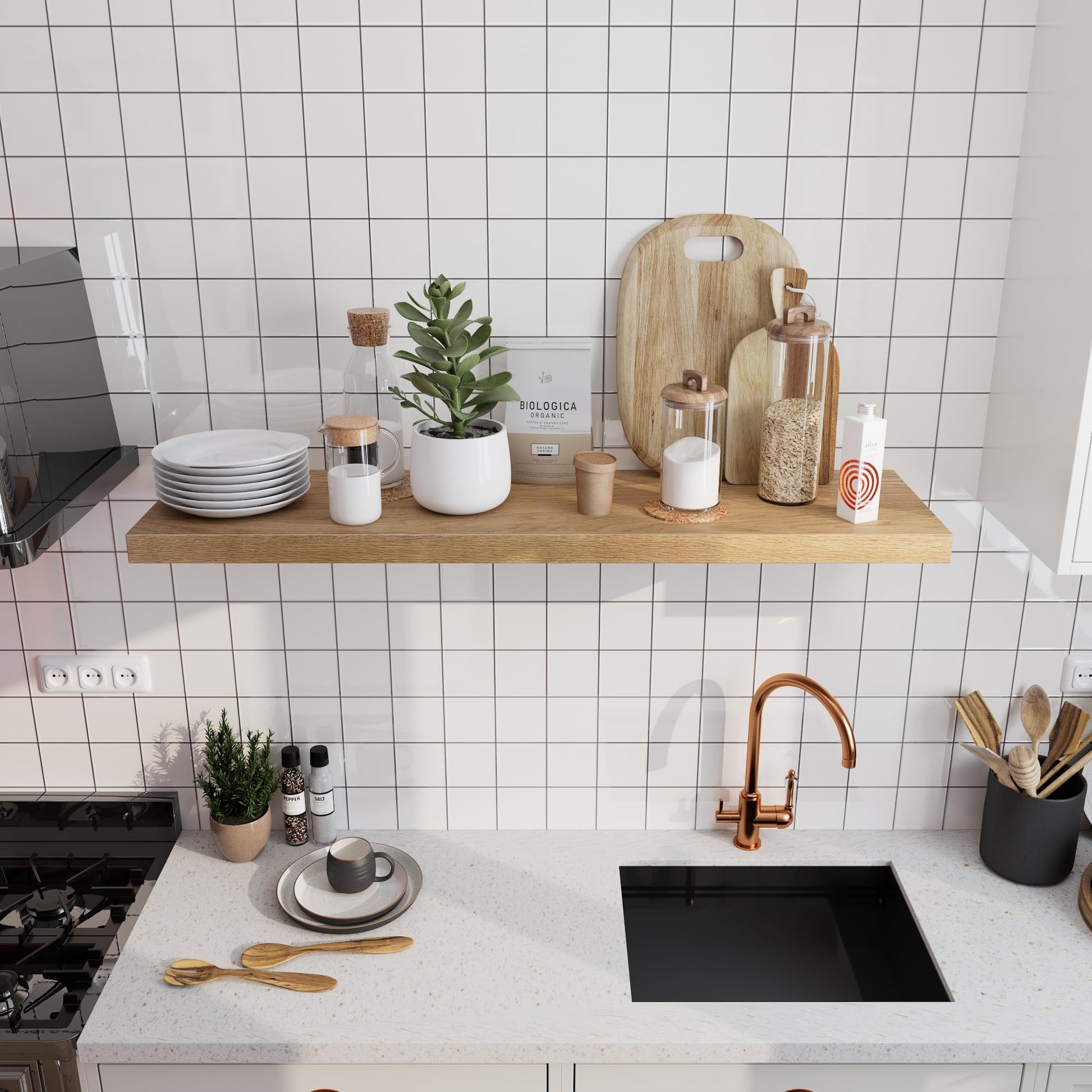 - This solid oak floating shelf comes with premium brackets that will remain stable and durable for a long time. The sturdy and durable brackets provide greater safety, securely supporting heavy loads and reducing the risk of items falling off the wall. Using the installation manual, the installation can be completed in minutes.