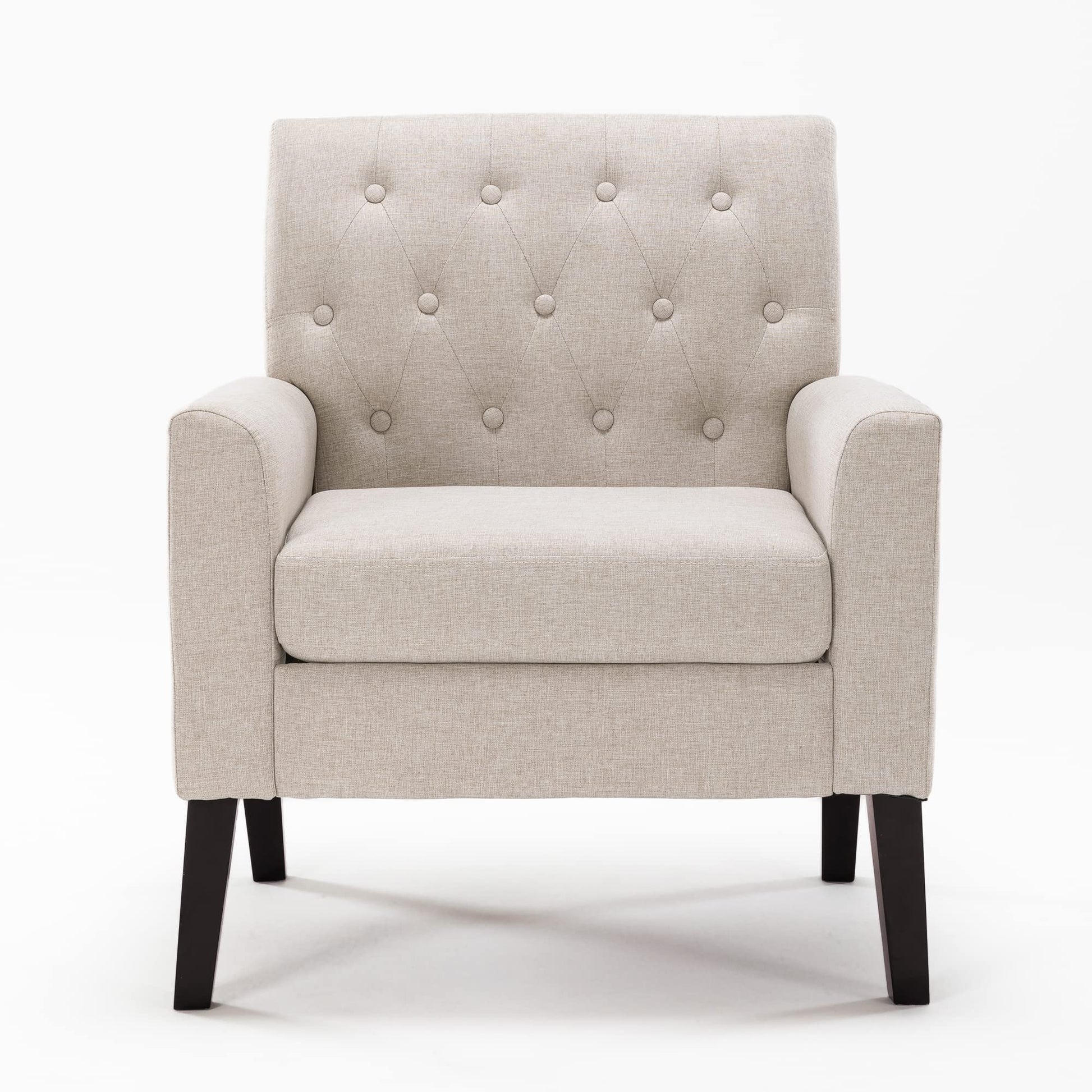 Linen Color Linen Accent Chair 18.5" H, Button Tufted Upholstered Modern Armchair