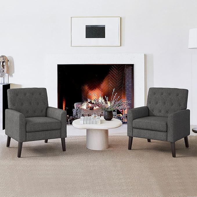 - THE BEST HOME DECOR: Solid-colour as the fundamental key while ornament with button tufted decoration avoids visual fatigue without losing monotony. Linen fabric match with wooden legs gives consideration to both simple and refreshing. Whether it's in a bedroom, living room, playroom, or dorm room, it can not only lighten a bare corner, but also match with some of the furniture you already own.