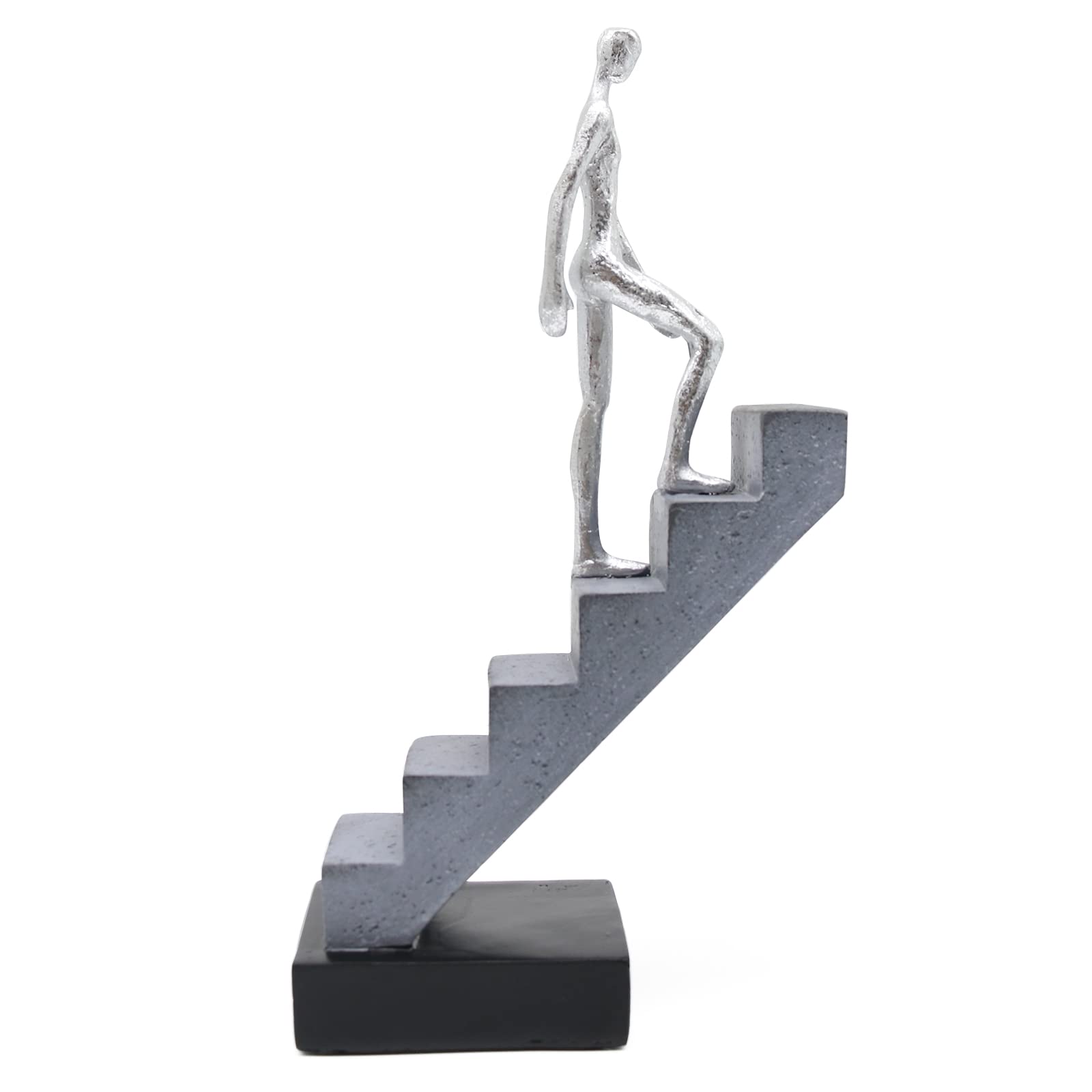- Climbing Stairs Statue :This statue displays the posture of the character climbing stairs, with both hands swinging back and forth, and one foot climbing a higher step. The abstract appearance achieves a perfect fusion of dynamic and static. The uniqueness of the character statue is its silver surface, which is luxurious and textured.